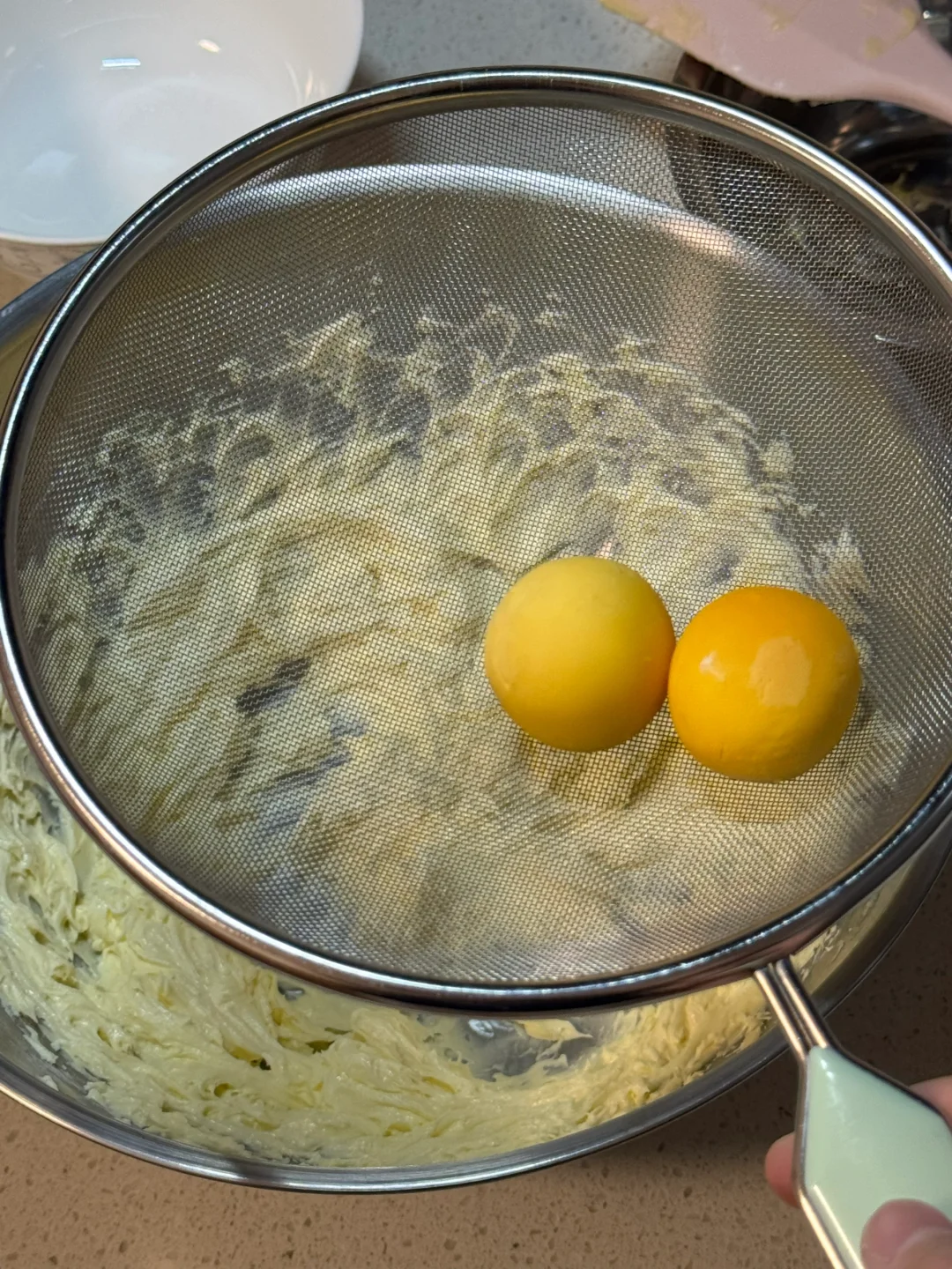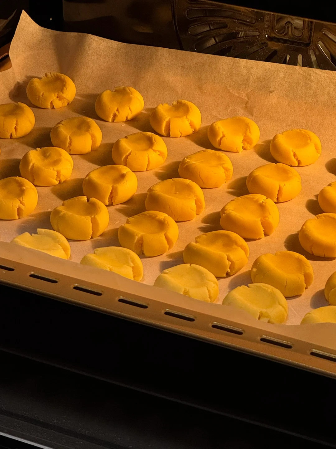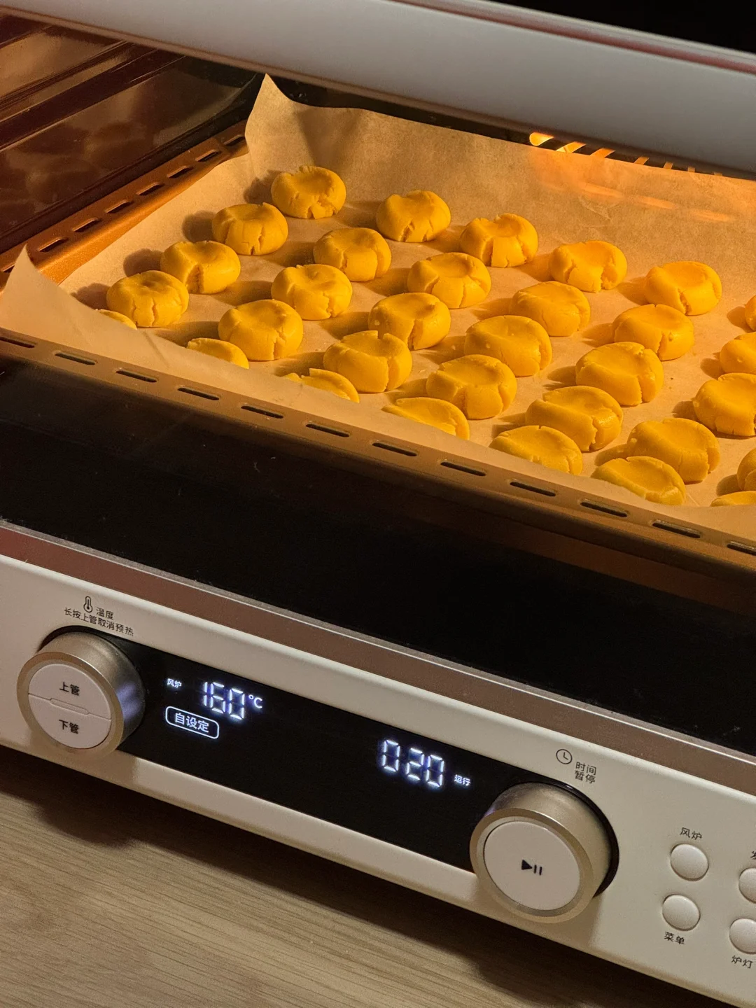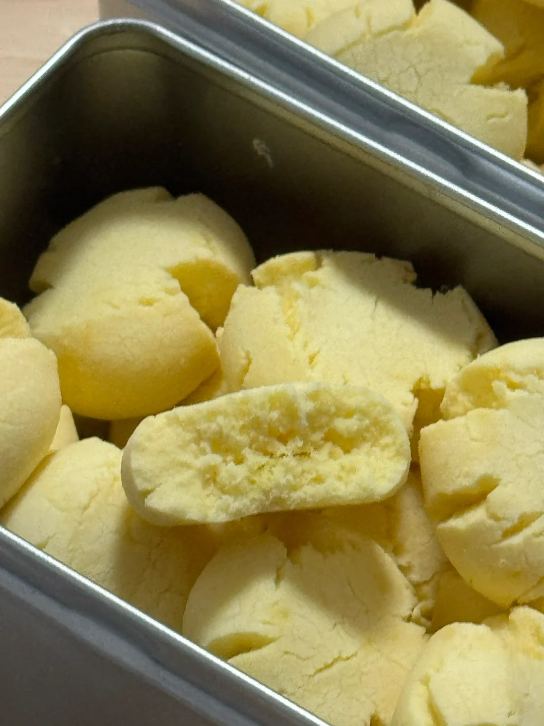 🌷食材: 黄油100g 糖粉50g 熟蛋黄2个 低筋面粉100g 玉米淀粉100g 🌷做法: 1.黄油提前软化,加入糖粉混合均匀。 2.再用打蛋器打发至蓬松发白。 3.过筛两个蛋黄混合均匀。 4.再筛入低筋面粉、玉米淀粉,切拌成絮状,再下手抓成团(不要过度揉,防止起筋) 5.均分成10g一个的小剂子,揉成球,放入烤盘,再用手指按压一下,烤箱提前预热,160度烘烤20分钟。 🌷满屋飘香,出炉后晾凉密封起来,奶香味十足,入口即化,大人小孩都爱吃[哇R][哇R][哇R]