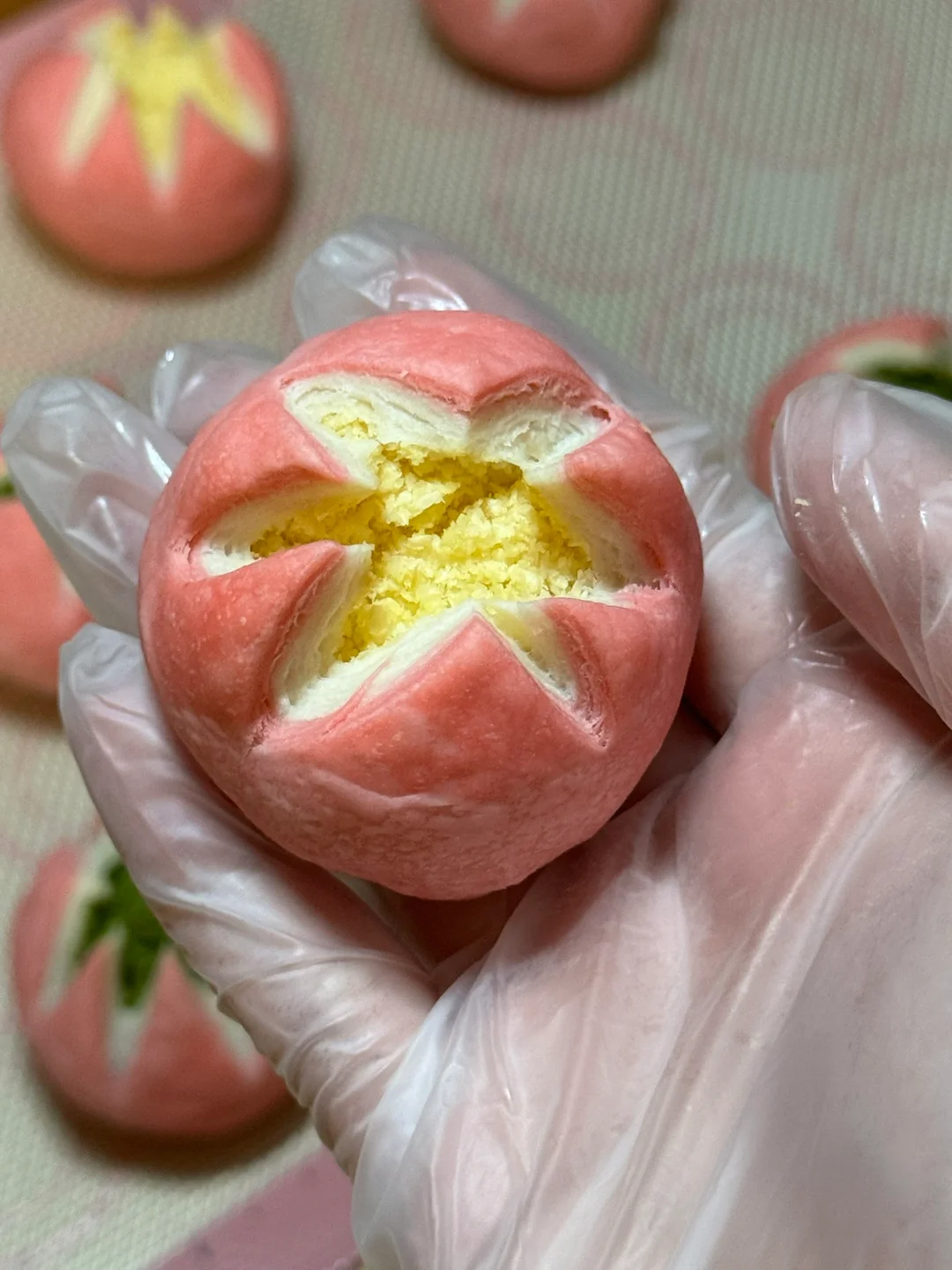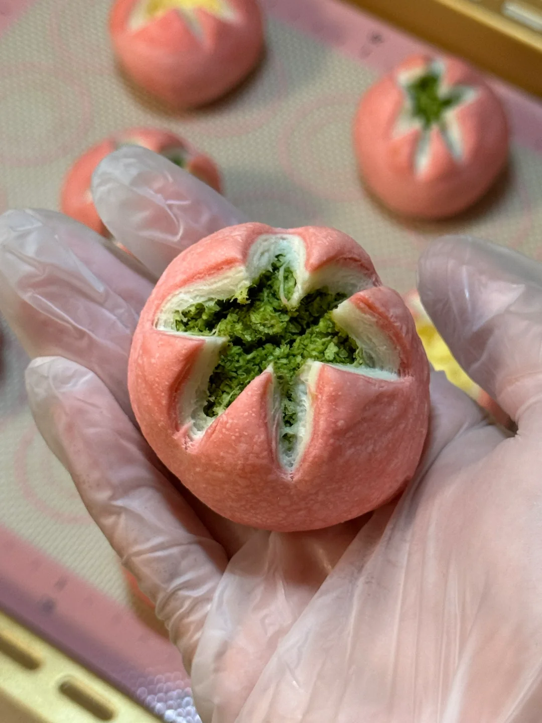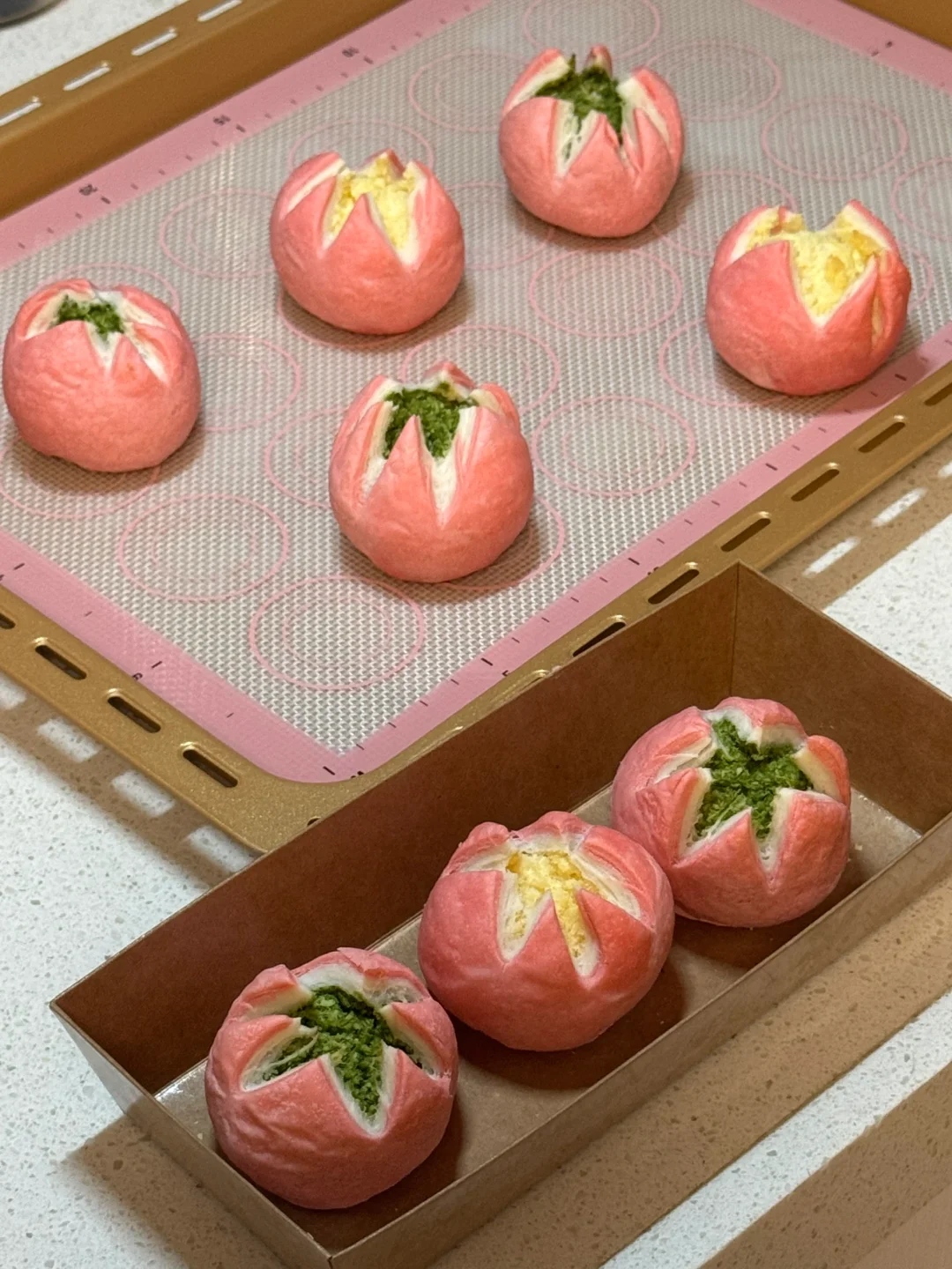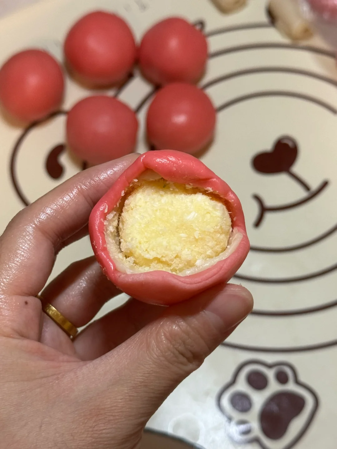 🪷出炉后,粉粉的真的很漂亮[害羞R][害羞R][害羞R]椰蓉馅很香,都不舍得吃了[哇R]