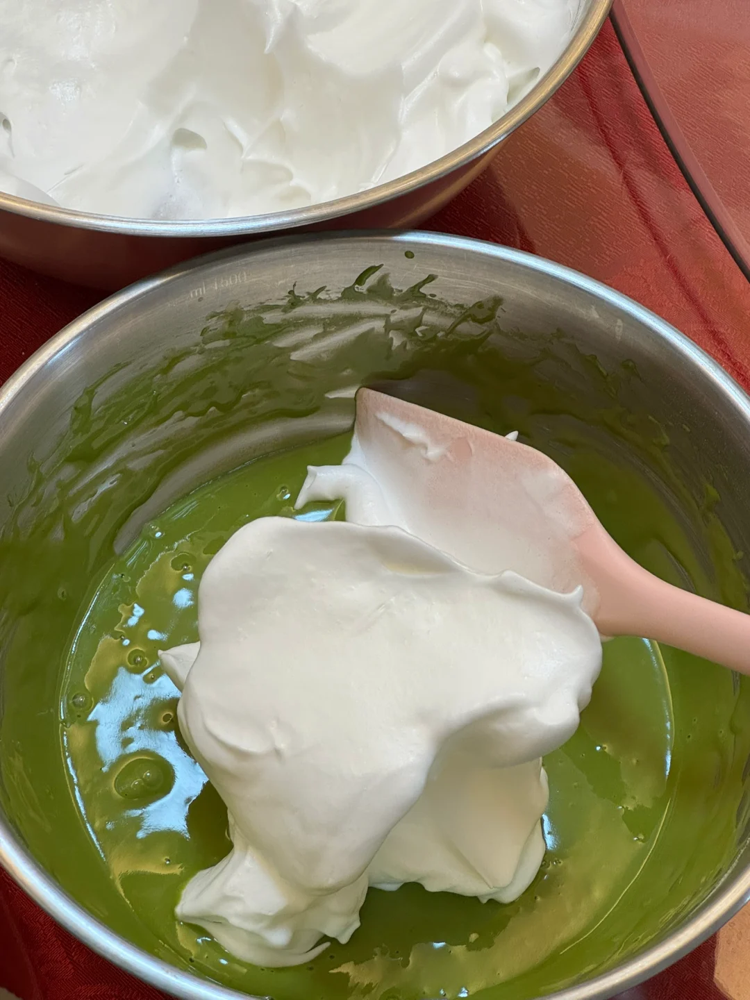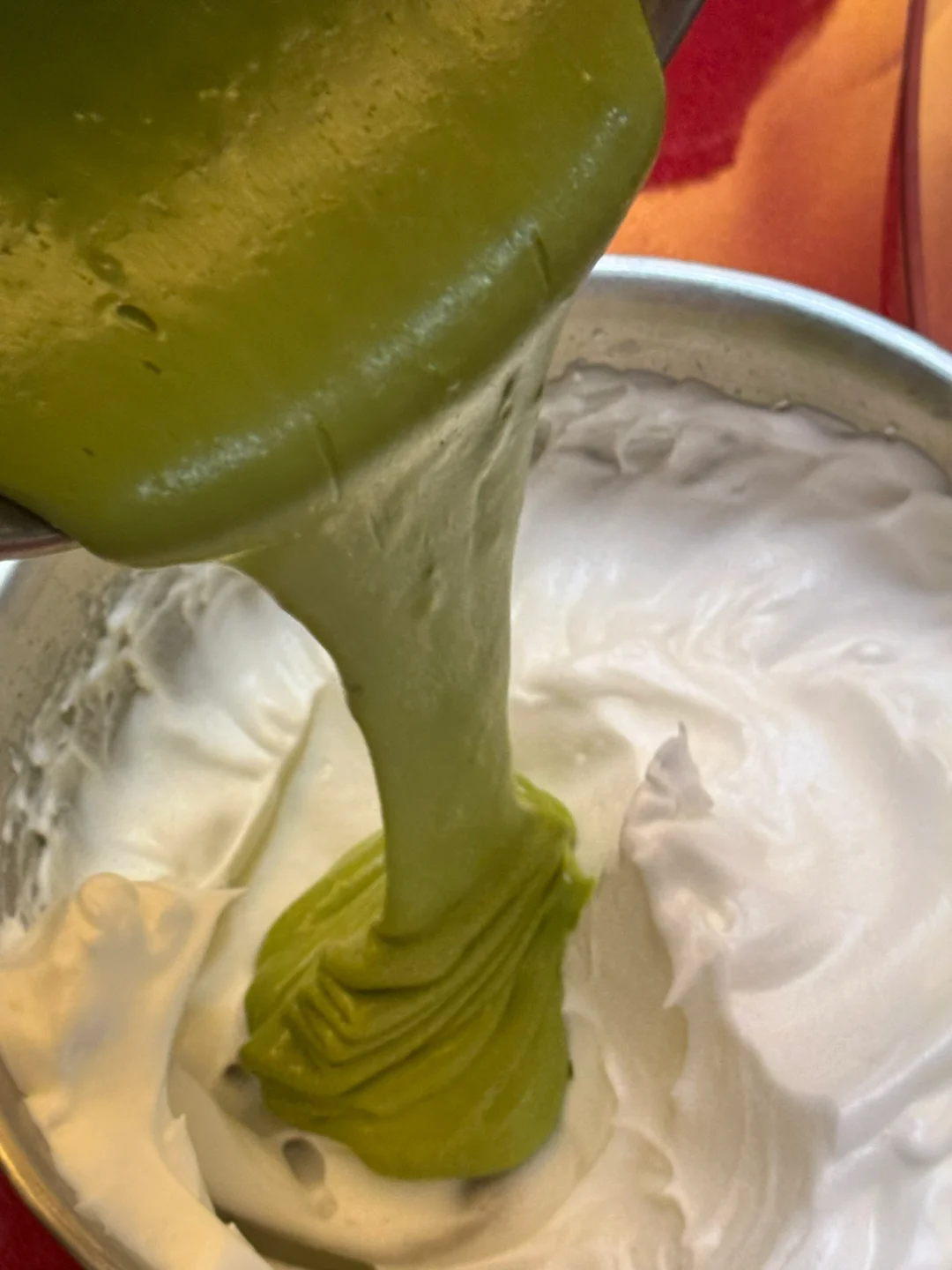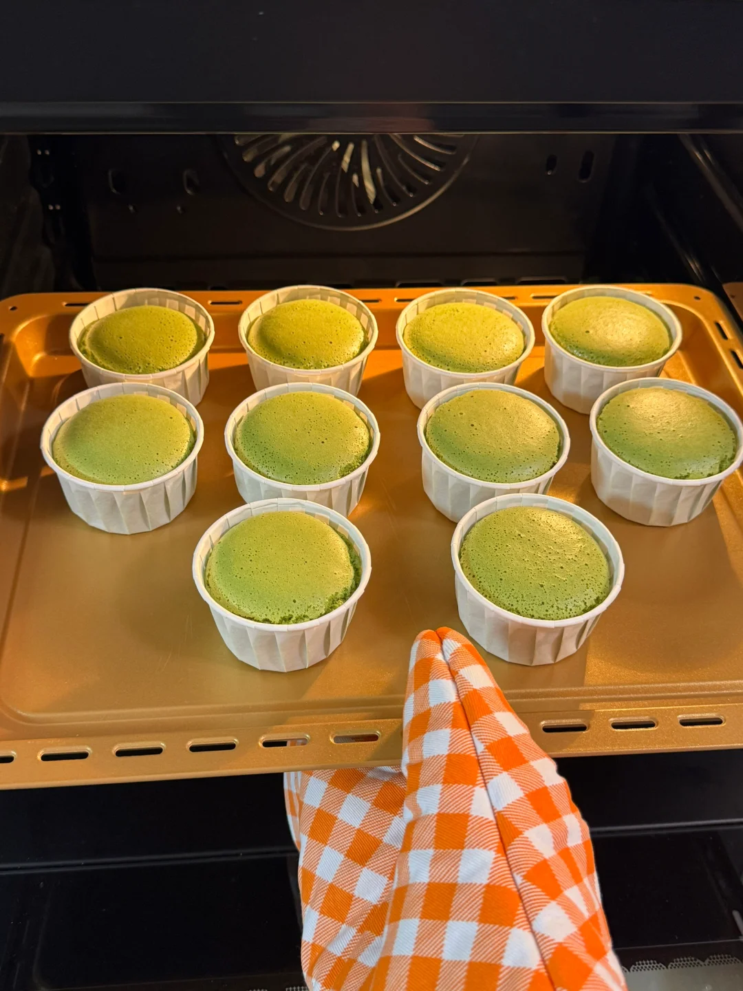 🌷不凹陷,不回缩,抹茶味巨浓郁,蛋糕体细腻绵软,建议用五十铃抹茶粉,烘烤出来的颜色也很漂亮[哇R]