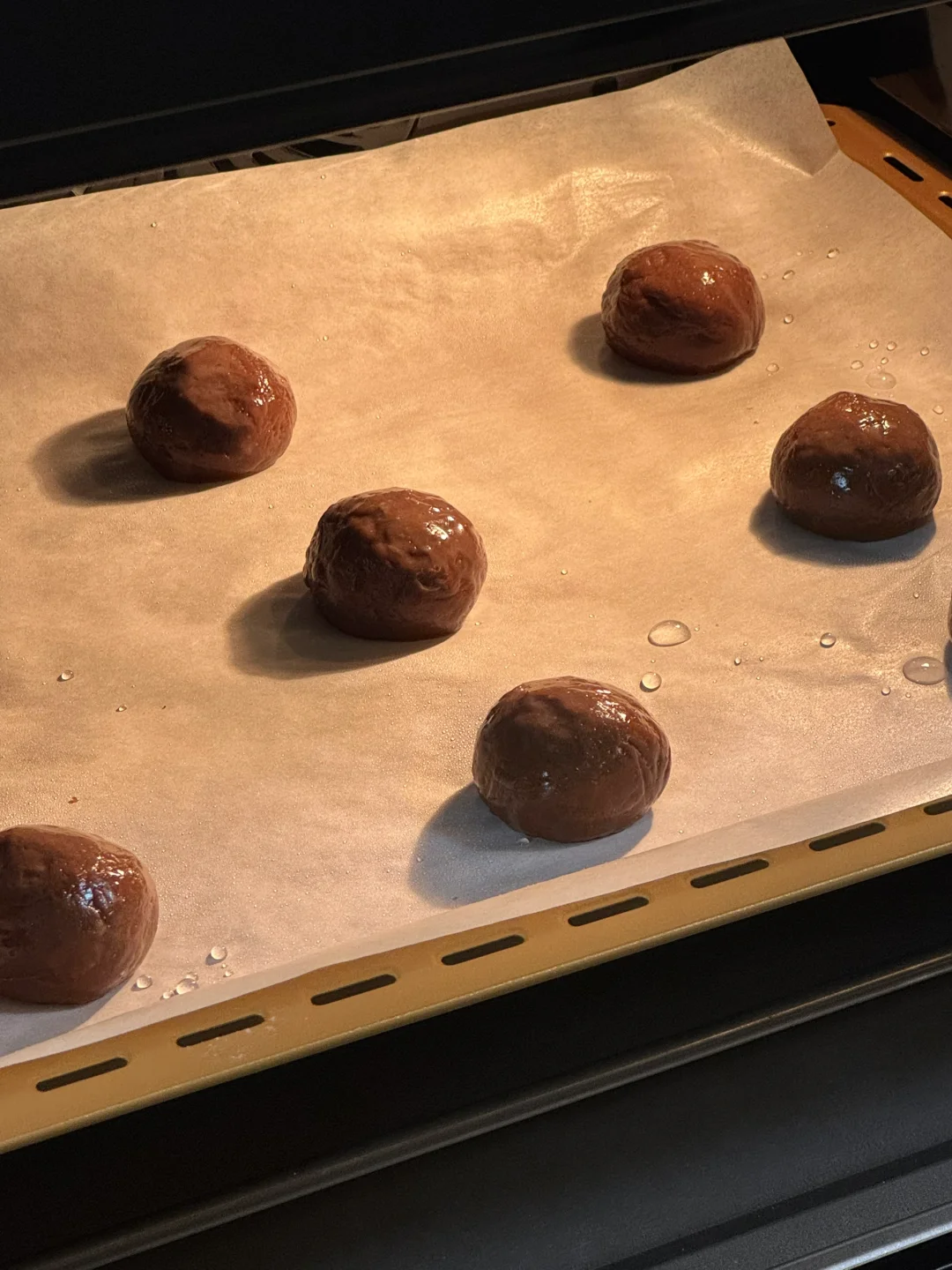 3.均分成9份,揉圆,放入烤盘,烤箱提前预热,170度烘烤35分钟(烘烤前记得喷水,防止烤的时候干裂)烤好之后不要马上拿出来,在烤箱里焖10分钟再取出。