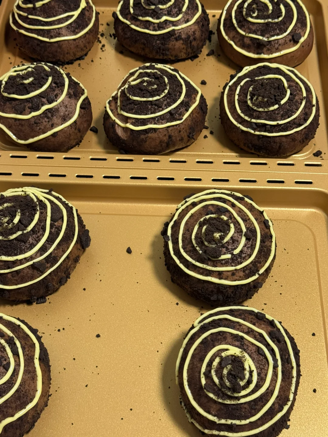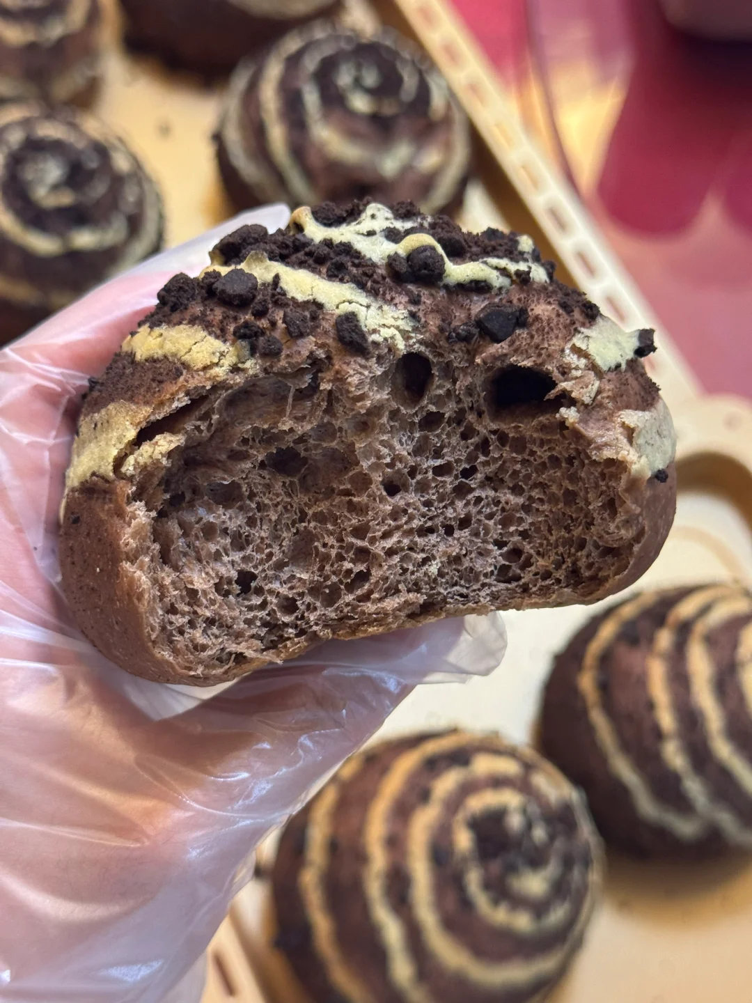 🌷巧克力脑袋狂喜,又有奥奥又有巧巧真的太好吃啦,这款面包的颜值也很高,一定要去试试呀[哇R][哇R][哇R]