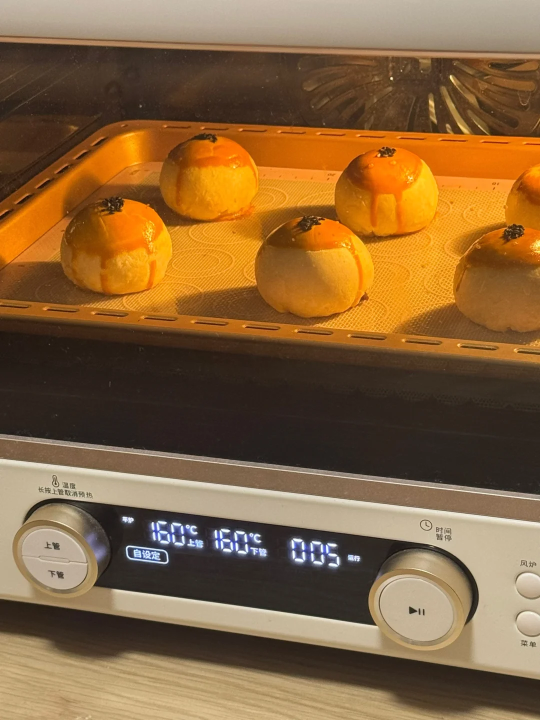 8.175度先烤25分钟,再转160度烘烤15分钟(生包的需要烘烤40分钟左右)