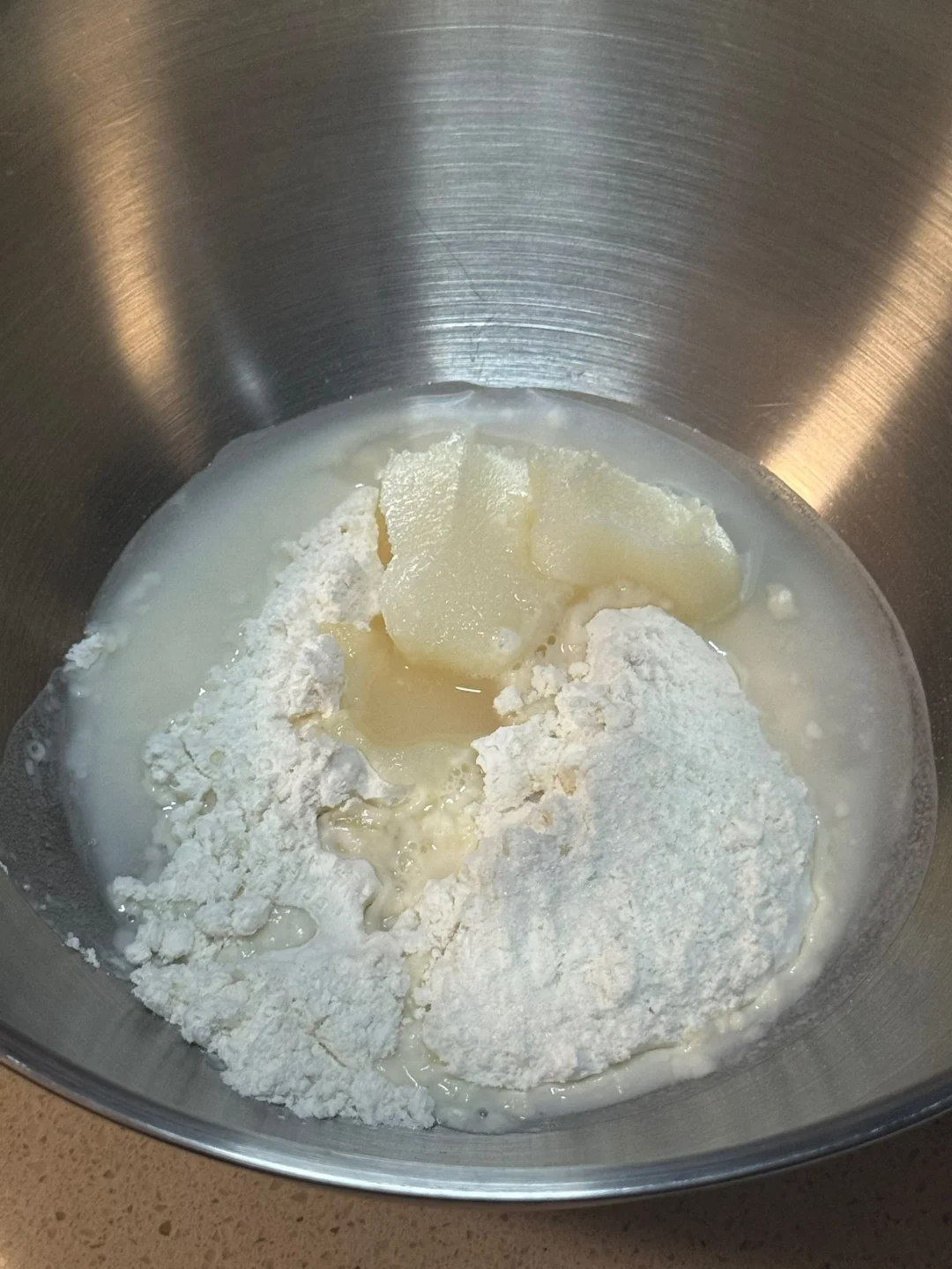 1.水油皮、油酥混合均匀,放冰箱松弛1小时备用(也可以提前一天做好放冰箱备用)