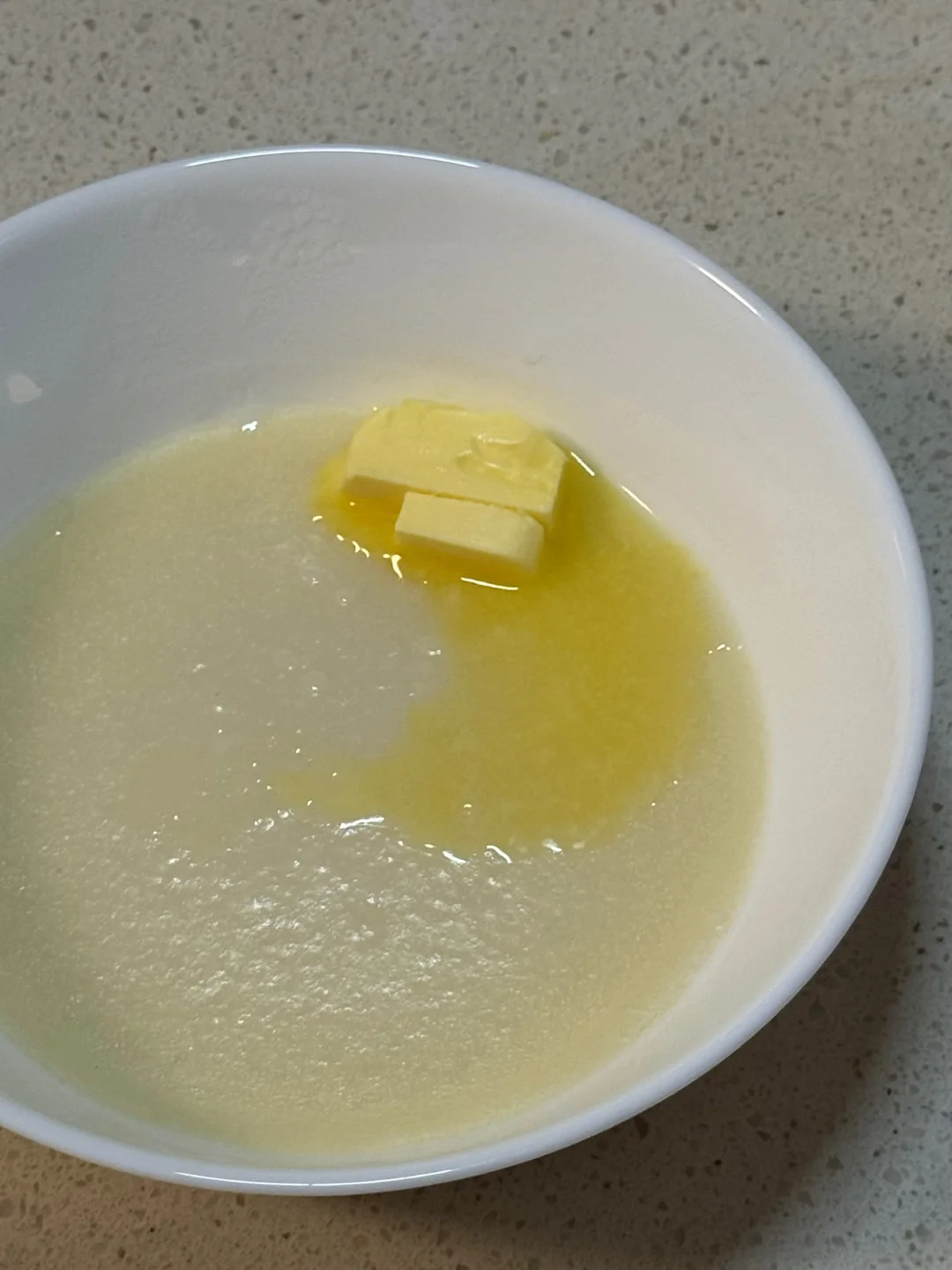 纯牛奶75个(以上食材搅拌均匀上锅蒸熟,蒸熟后放入黄油5g揉匀均,来回拉扯一下。