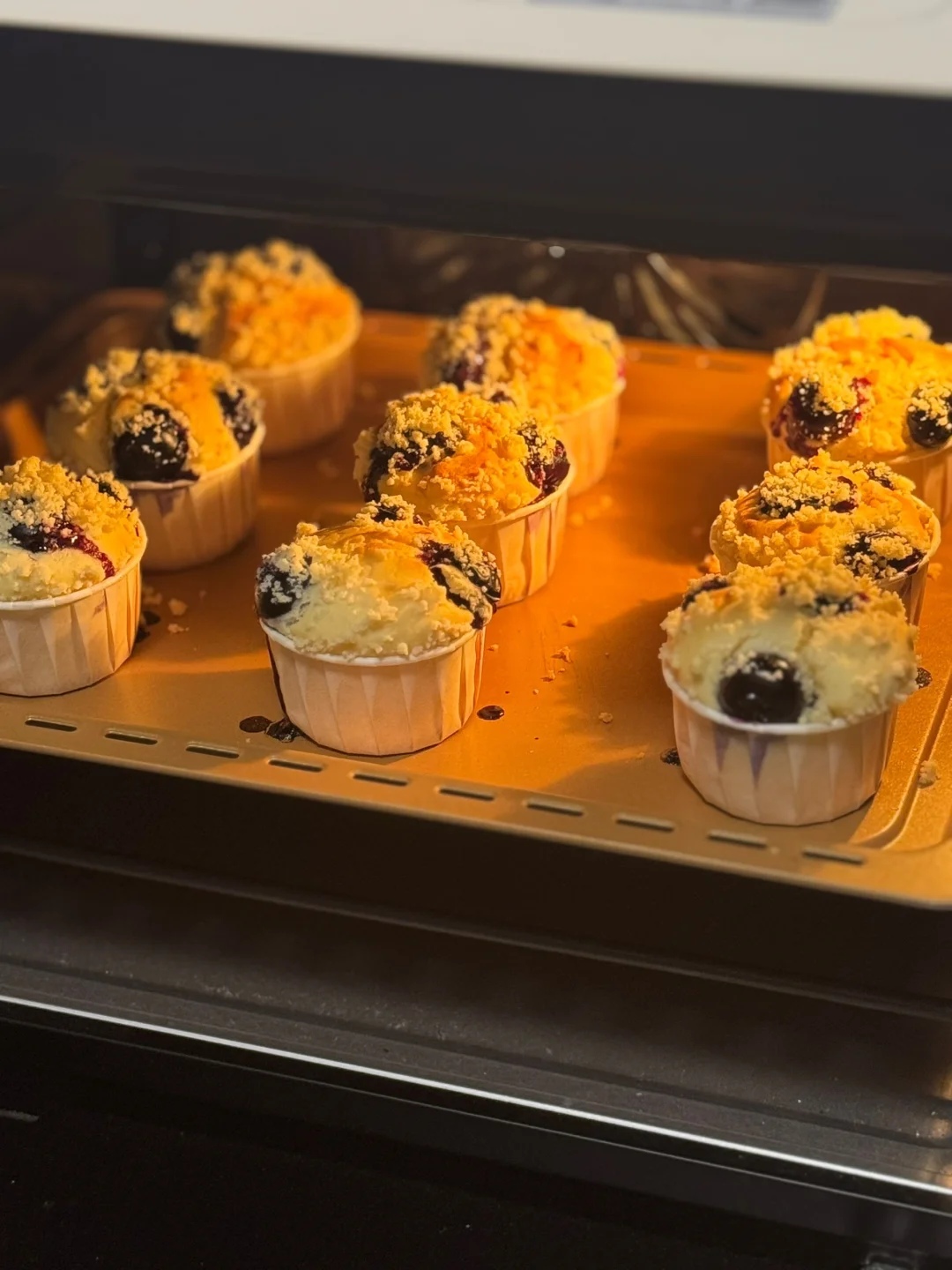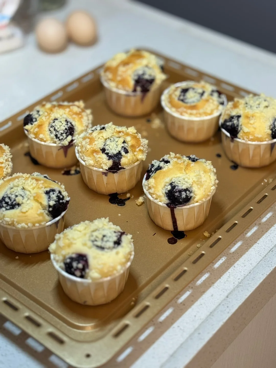 🌷新手小白也能做,搅一搅就能完成,爆浆蓝莓玛芬真的绝绝子,快去试试吧!