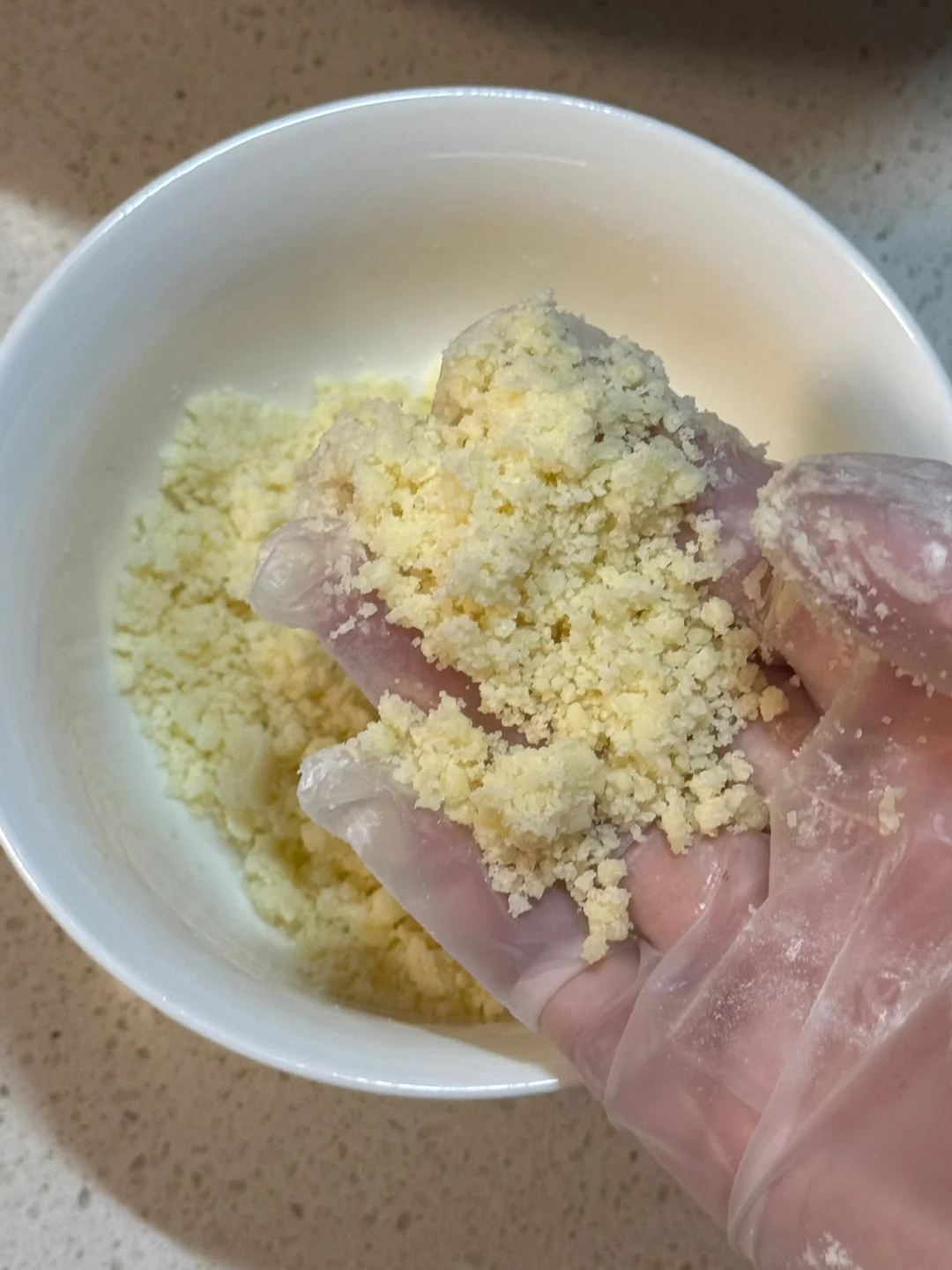 细砂糖10g(酥粒食材混合搓至沙粒状备用)