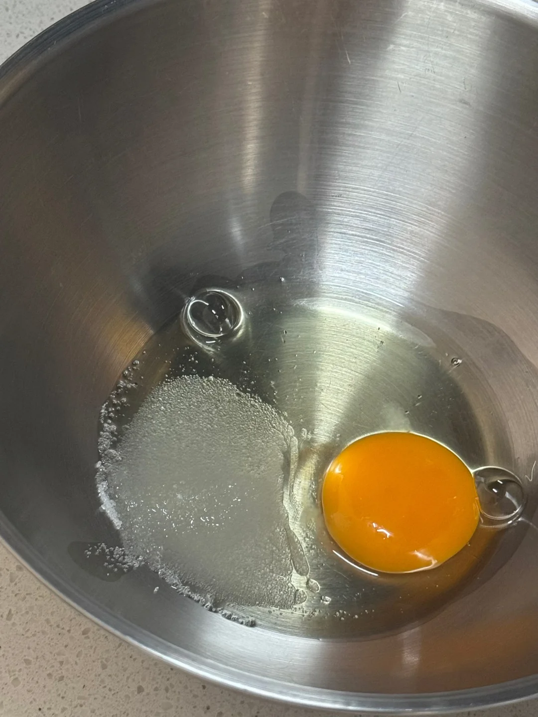 1.鸡蛋、细砂糖、炼乳搅拌均匀。