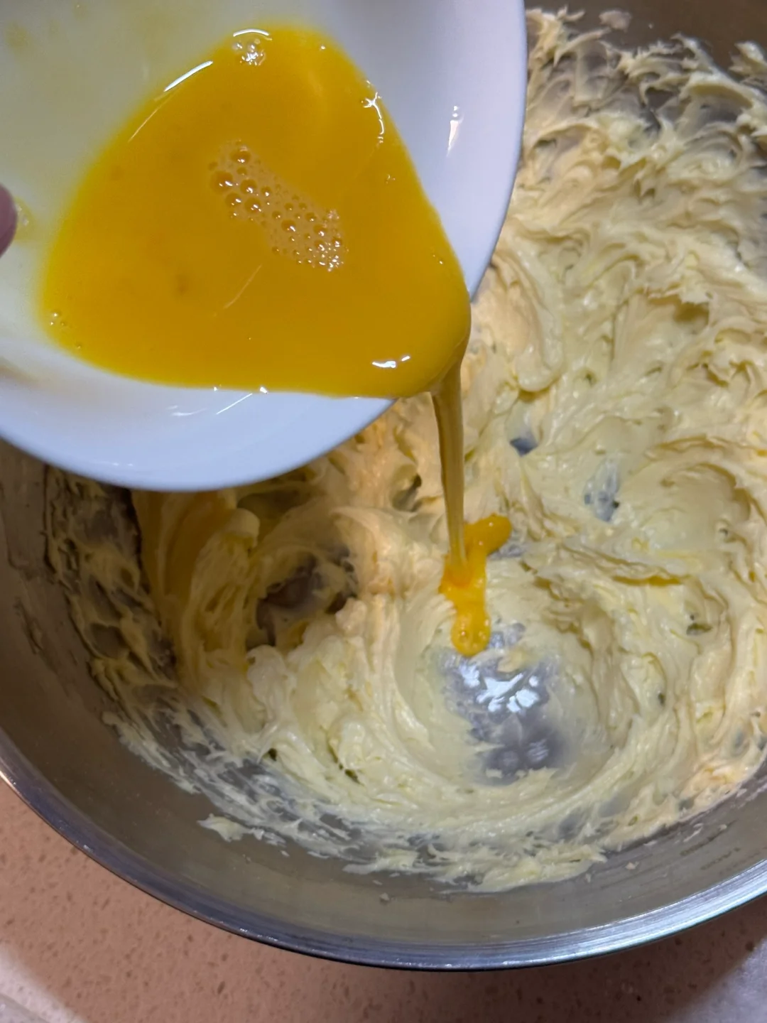 2.倒入常温蛋液搅到至蛋液吸收。