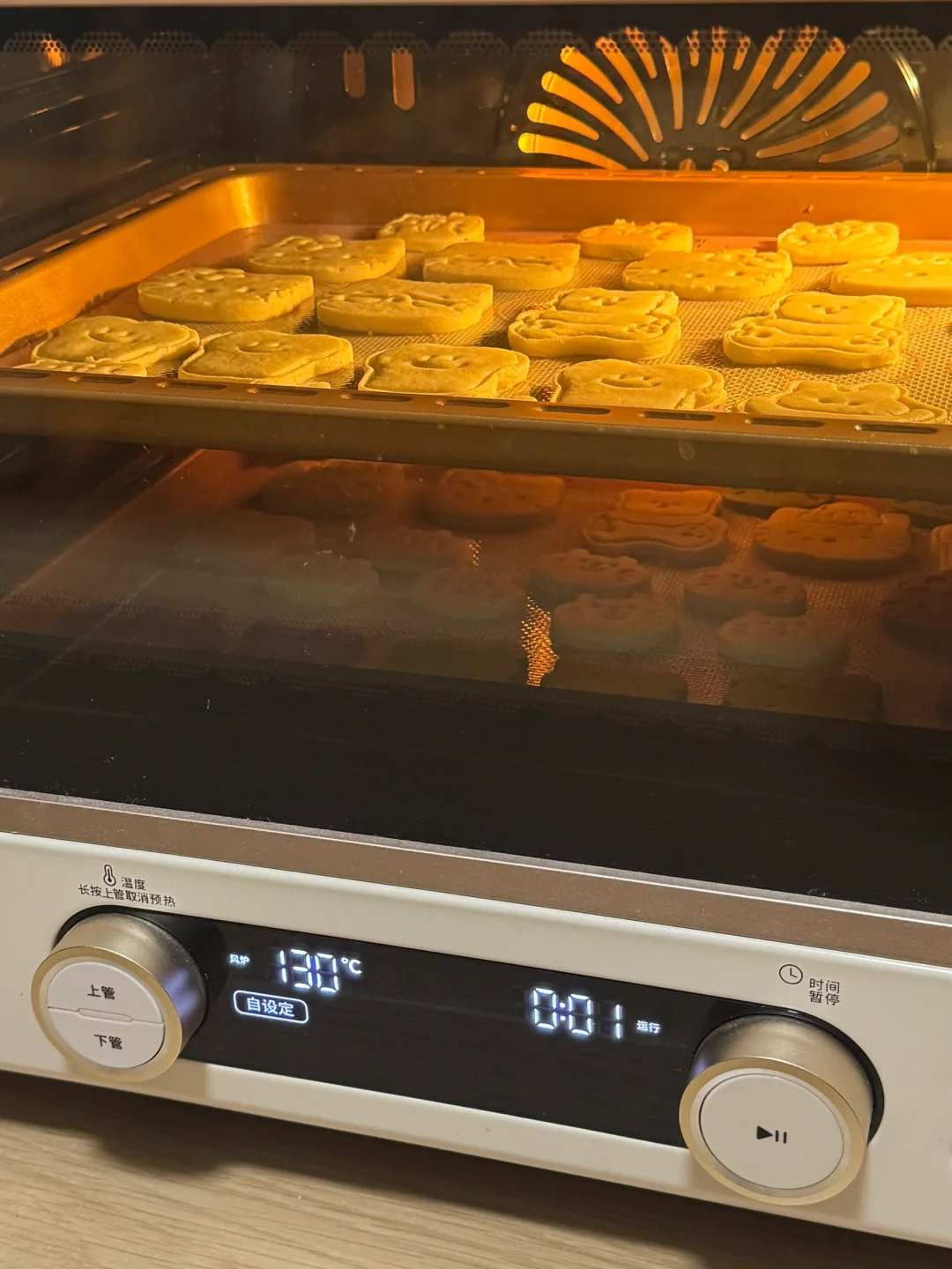 5.烤箱提前预热,风炉模式145分钟烘烤12分钟,转130度烘烤8分钟,出炉晾凉,密封保存。