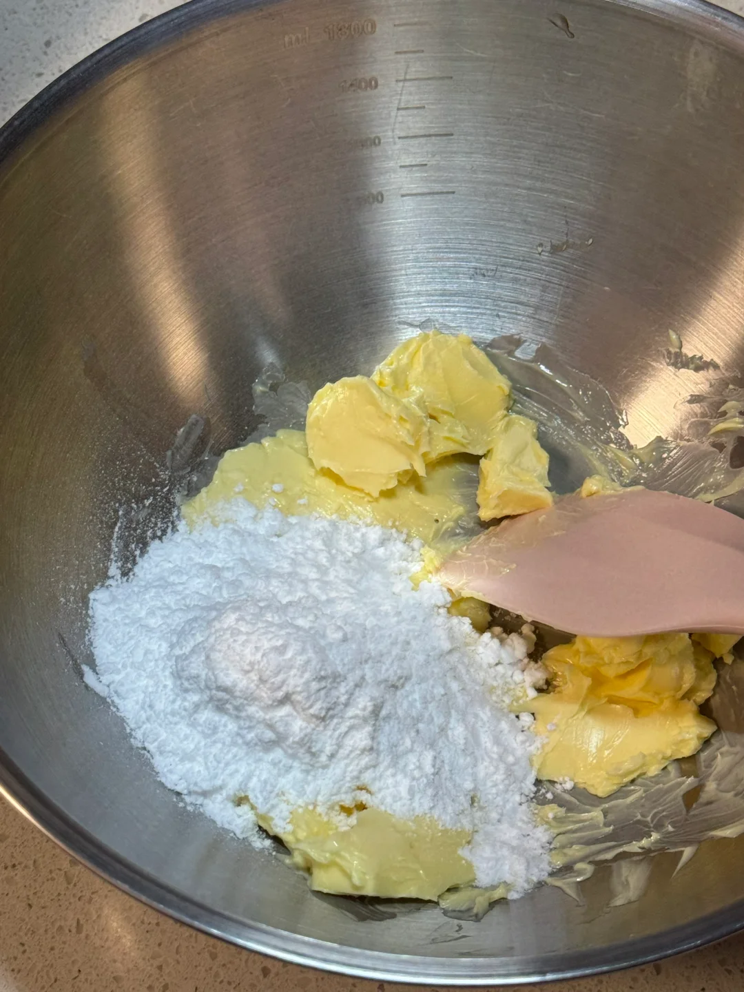 1.软化后的黄油加糖粉、盐搅打顺滑。
