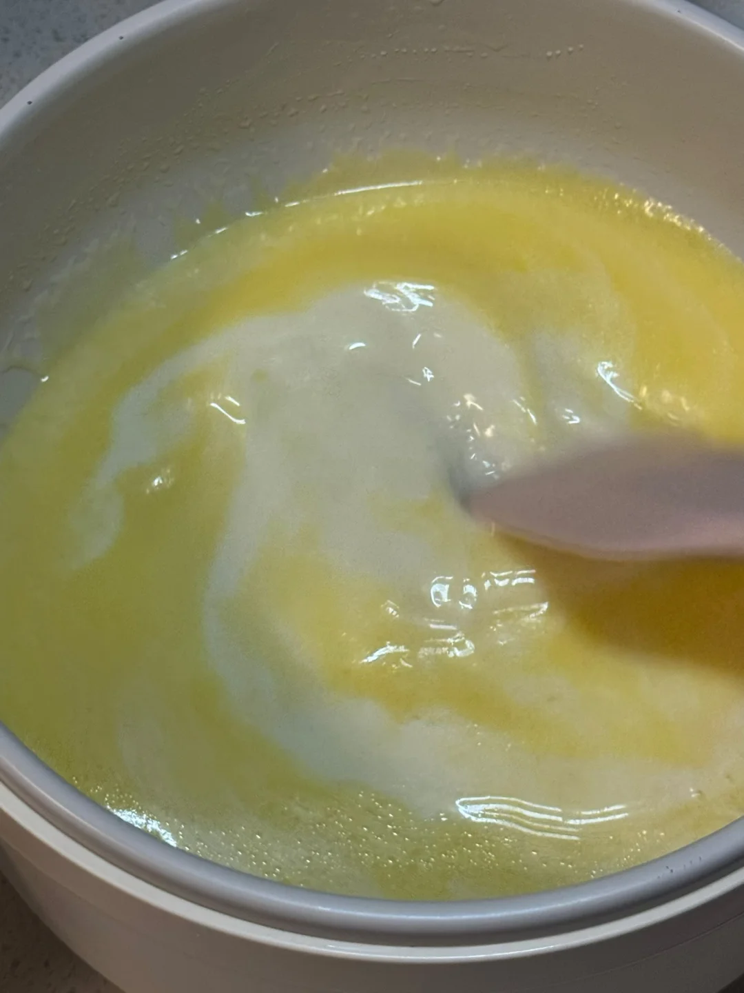 (鸡蛋先搅拌均匀,淡奶油、黄油、牛奶和细砂糖倒入小奶锅小火加热至黄油融化后,不太热的时候倒入蛋液里搅拌均匀,过筛粉类到液体里,再次搅拌均匀。最后过筛到不粘锅里,中小火炒至报团放凉备用)