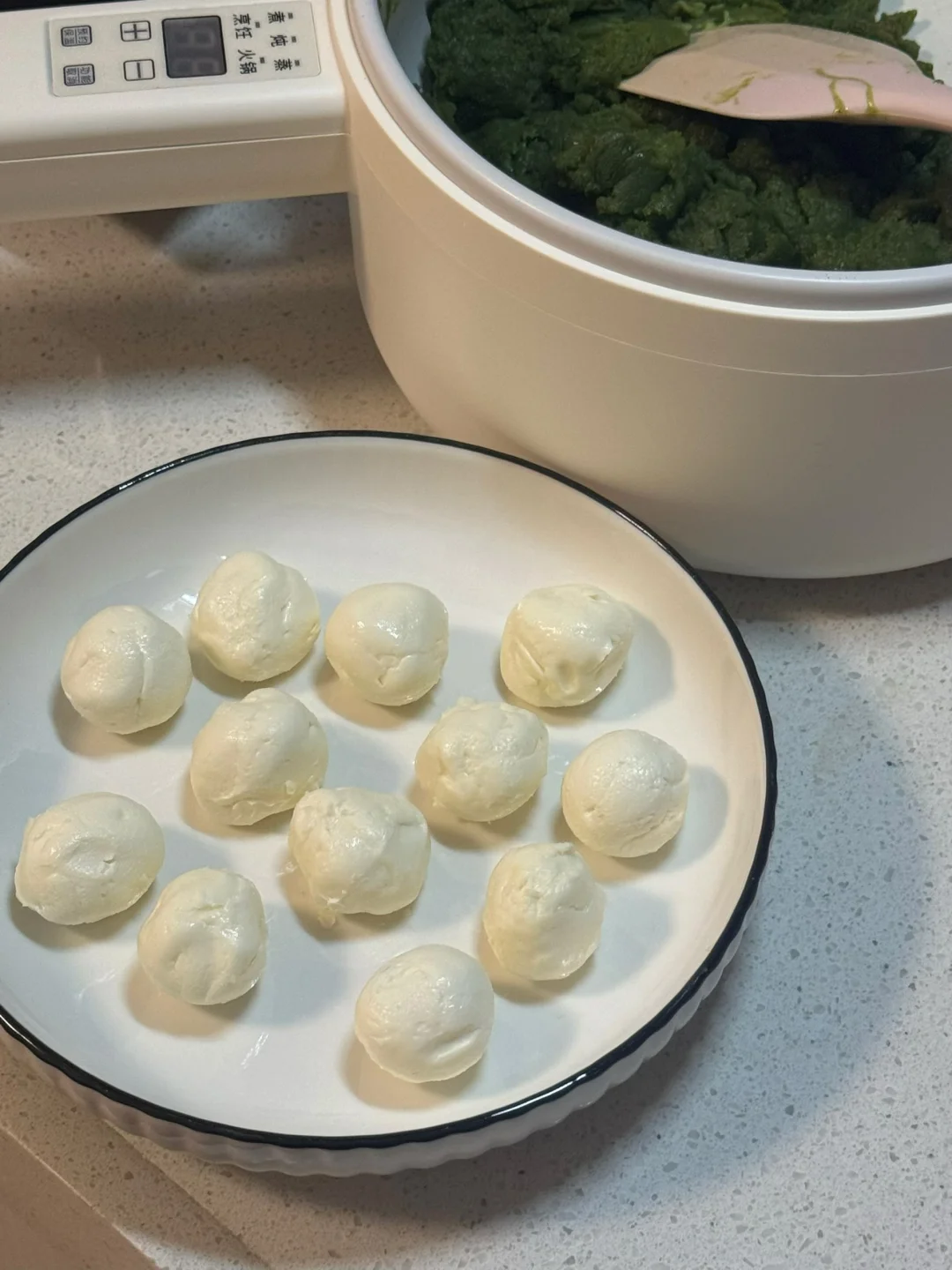 30g抹茶馅包入10g的奶油奶酪,冷冻备用