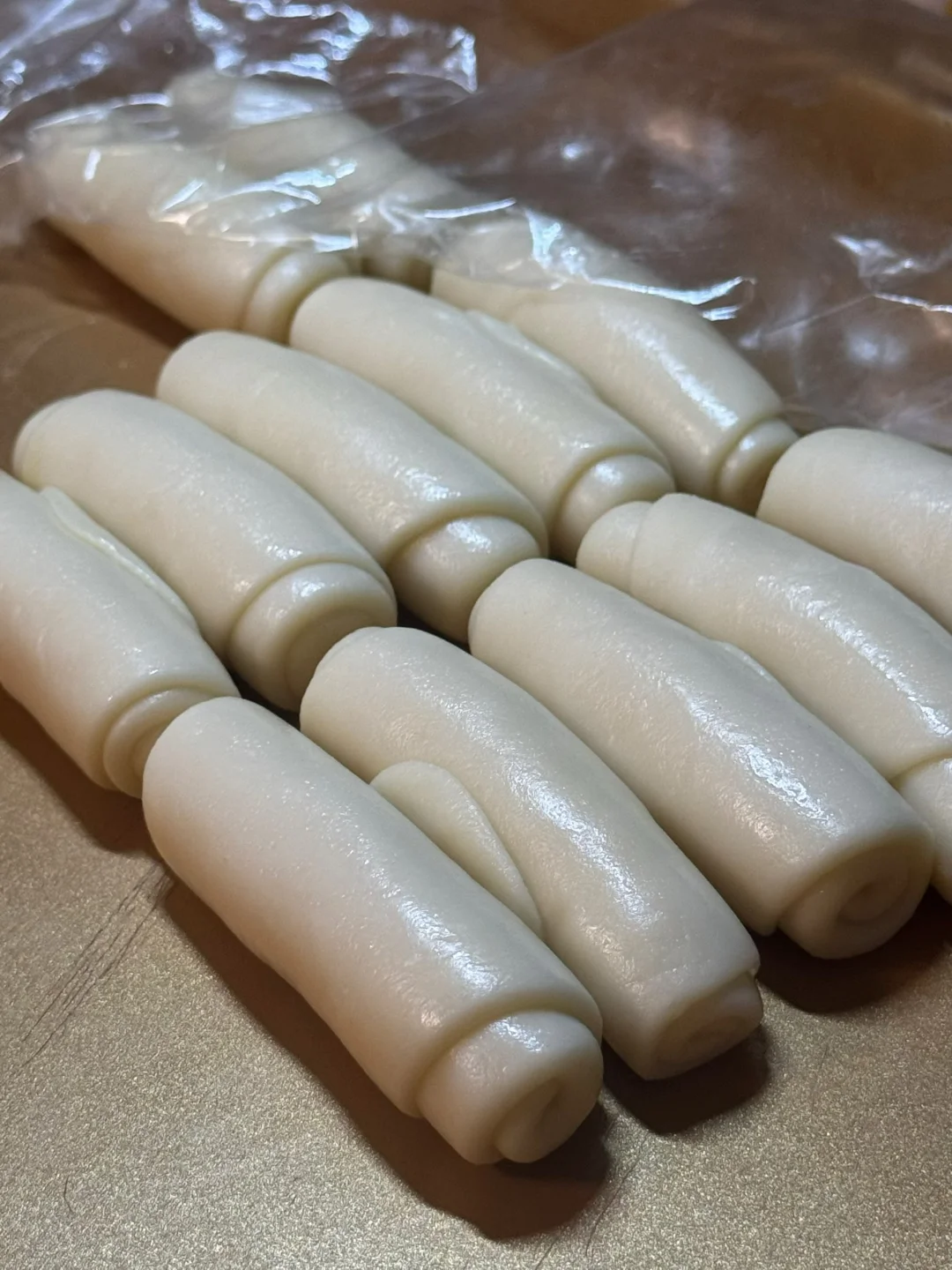 1.水油皮、油酥分别混合均匀装入保鲜袋放冰箱冷藏一夜。