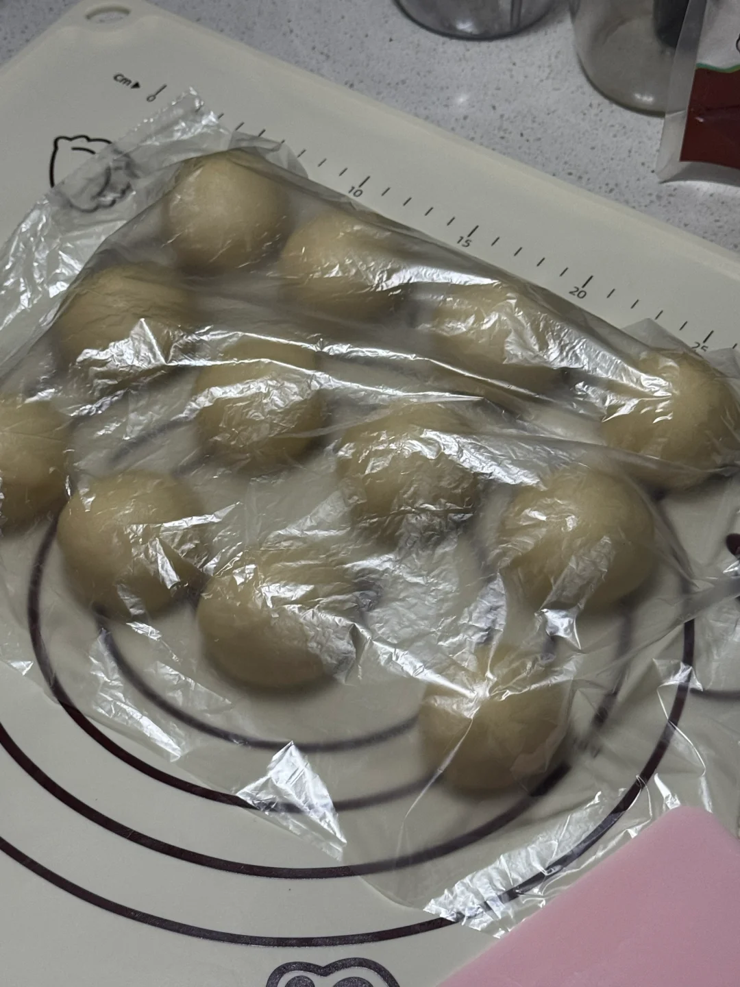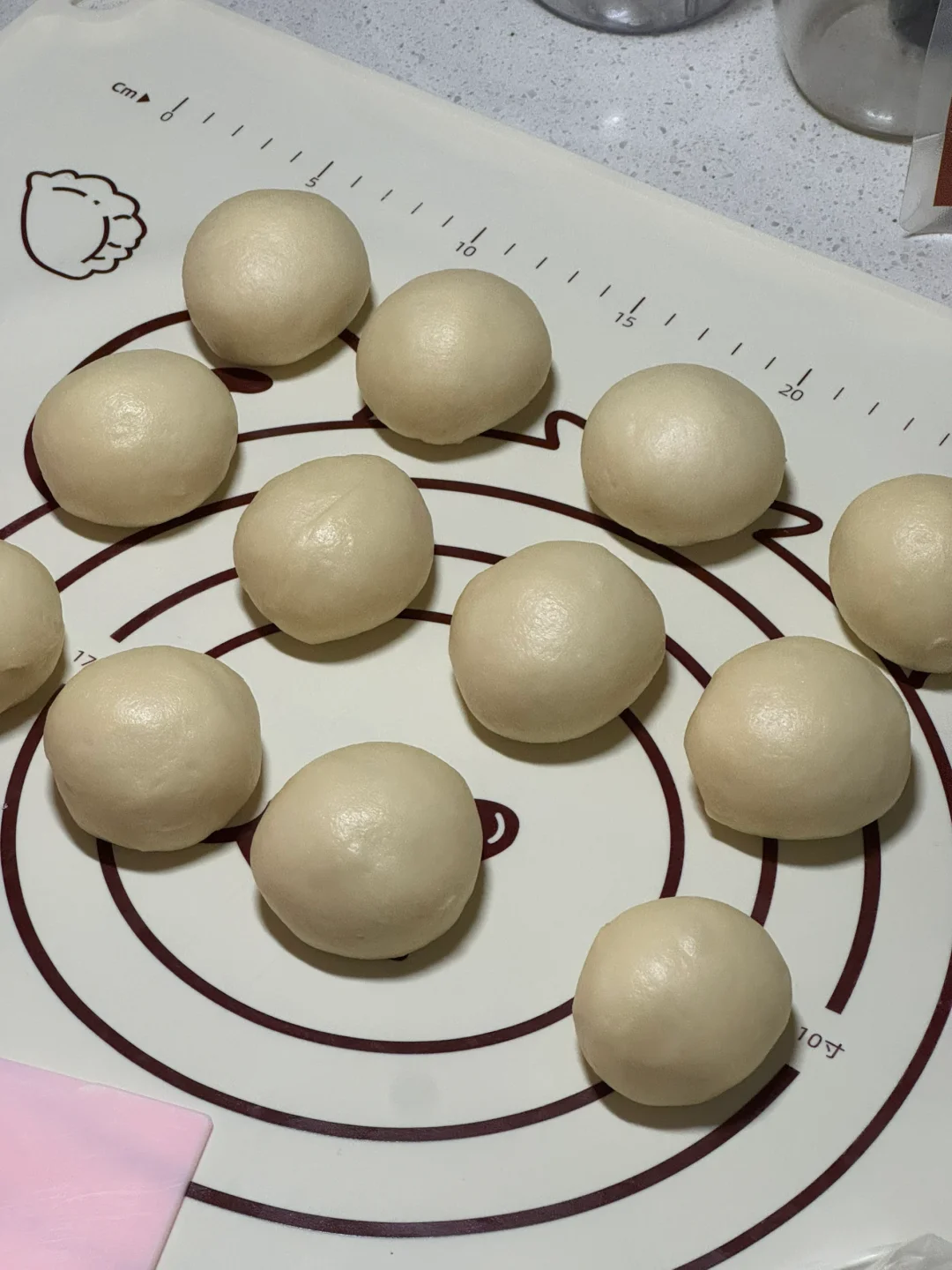 2.直接整形均分割12份松弛10分钟,揉圆。