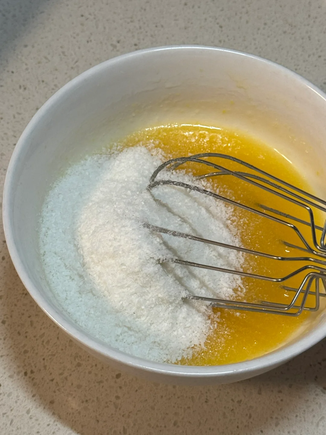4.椰蓉酱的做法很简单,全部混合均匀,装入裱花袋备用。