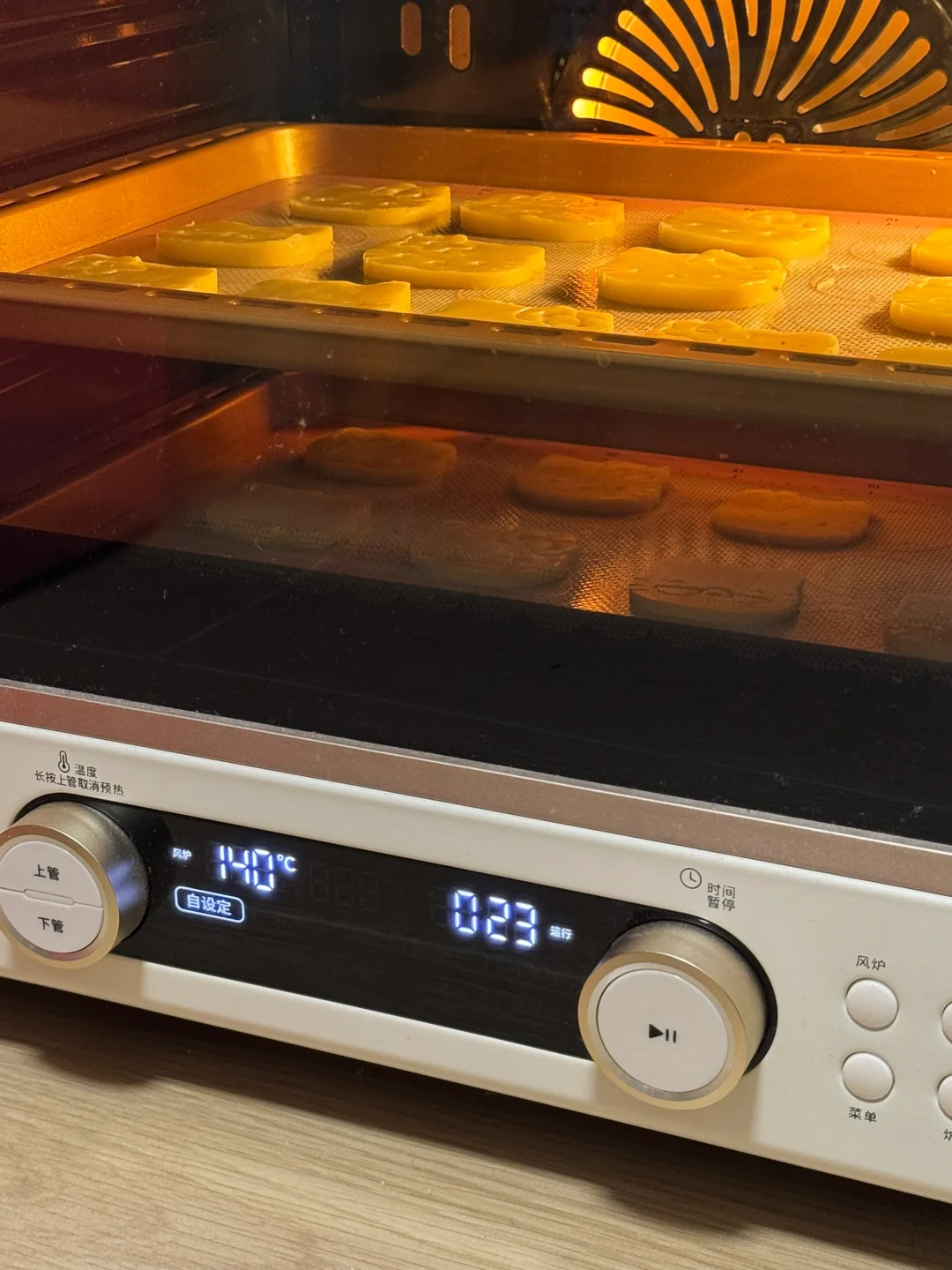 4.烤箱提前预热,风炉模式140度烘烤25分钟,出炉后晾凉,巧克力笔用温开水泡一下,分别挤入碗中,因为要画的表情太小了,只能用牙签慢慢画,这款饼干非常的耗时,但成就感满满[哇R][哇R][哇R]
