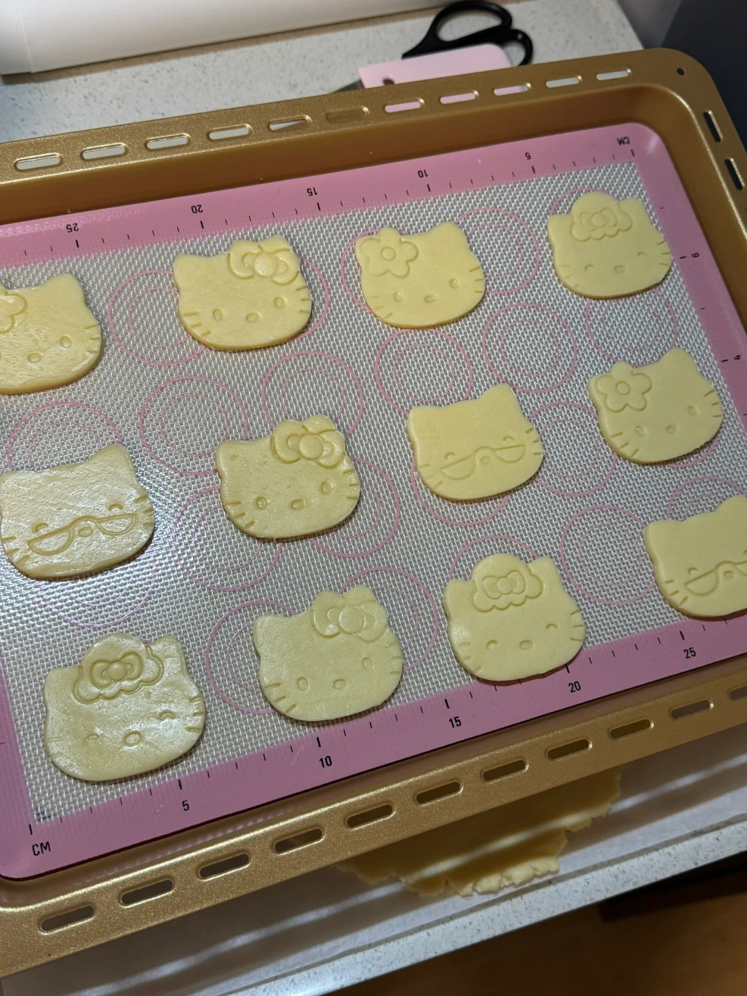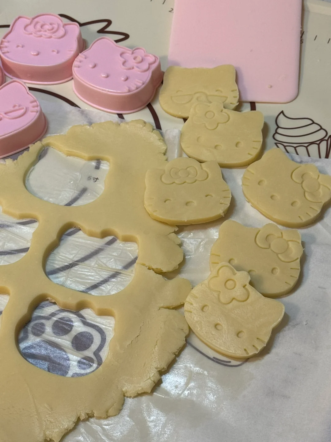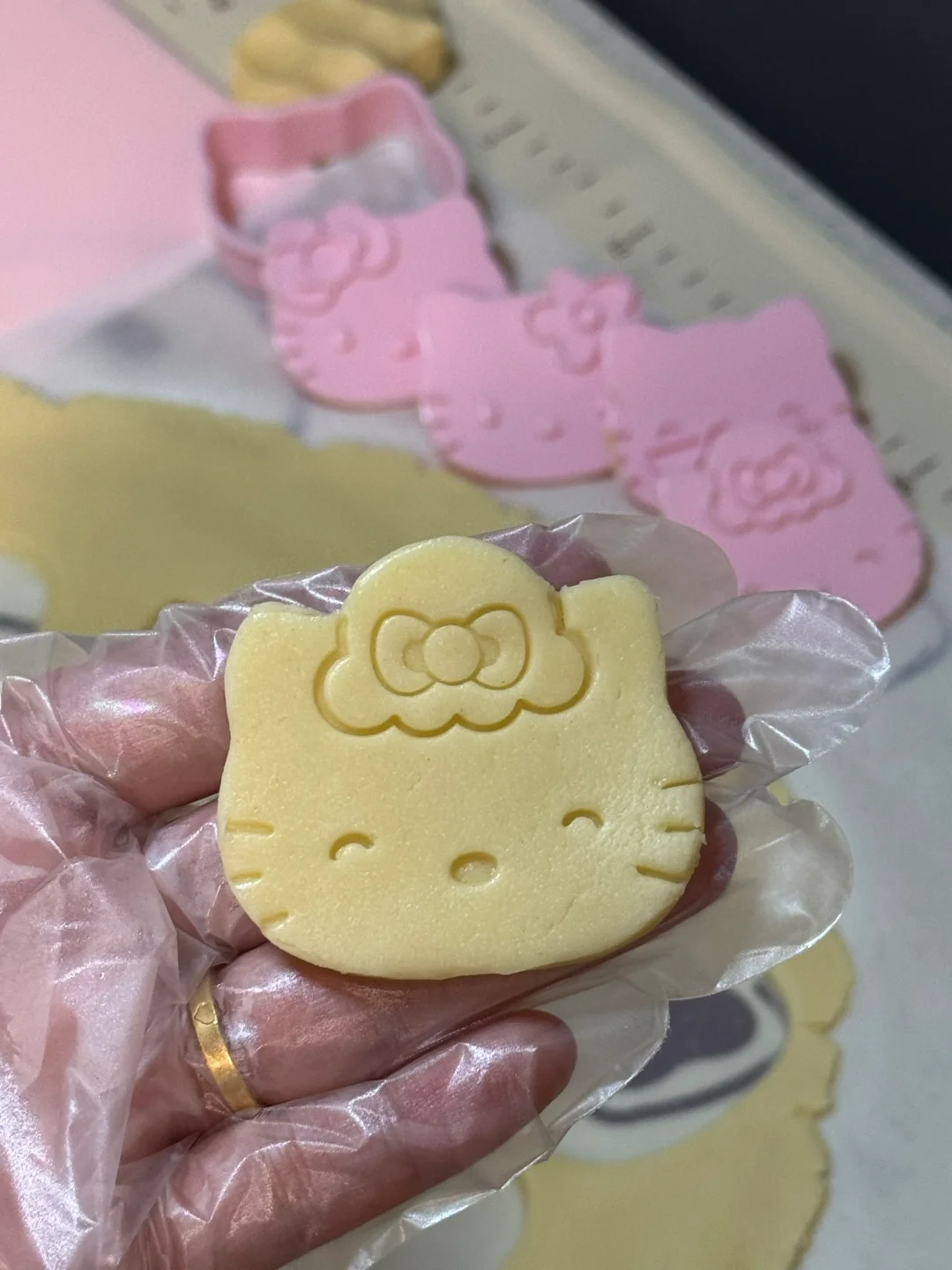 3.擀成薄片,放冰箱冷冻10分钟,取出,用模具刻出kt