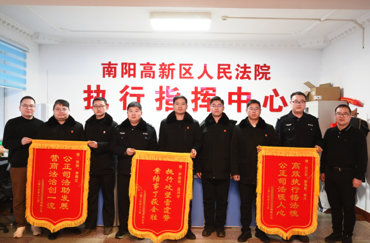 12月15日上午,某建设公司负责人专程来到南阳高新区法院,将三面锦旗赠予执行庭,对该院通过创新举措、高效履职将一起标的额逾亿元的建设工程合同纠纷系列执行案,成功化解维护了企业的合法权益表达感谢。这三面锦旗,不仅承载着当事人对法院工作的认可与感激,更是该院深入践行“司法为民、服务大局”理念,以高质量司法护航高质量发展的生动注脚。
