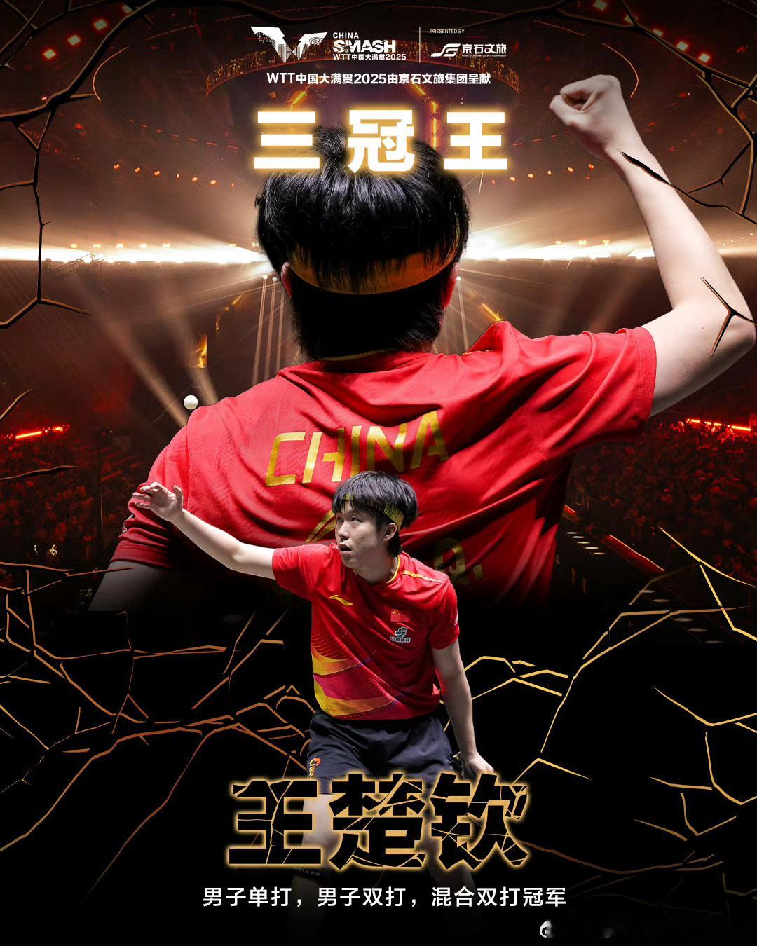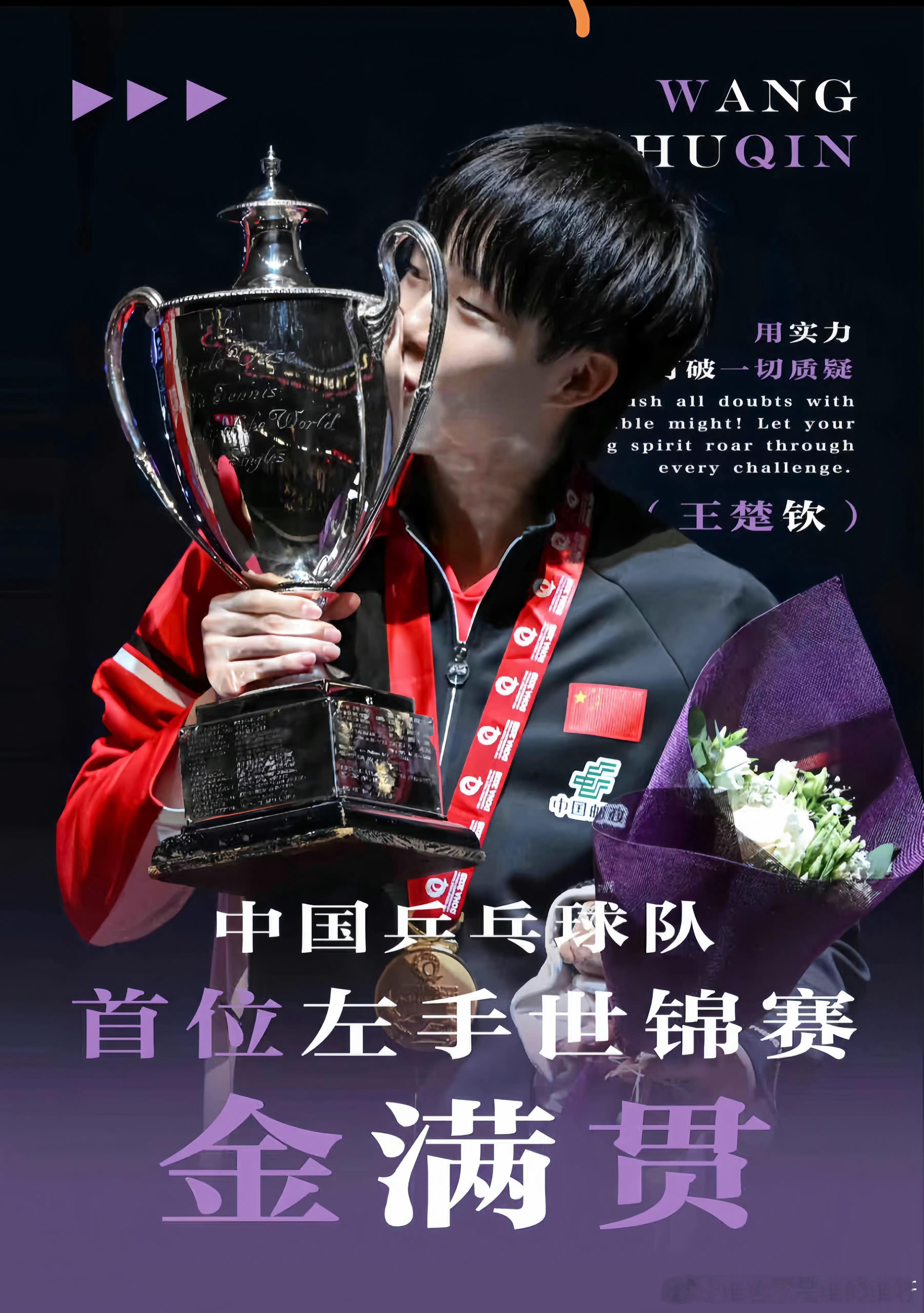 🏆2025年2月23日,深圳亚洲杯男单决赛中,王楚钦以4-0战胜队友梁靖崑,夺得亚洲杯男单冠军。 🏆2025年多哈世乒赛 男单摘金,永远为之动容! 🏆2025年中国大满贯男单、男双、混双冠军。 〈三冠王〉