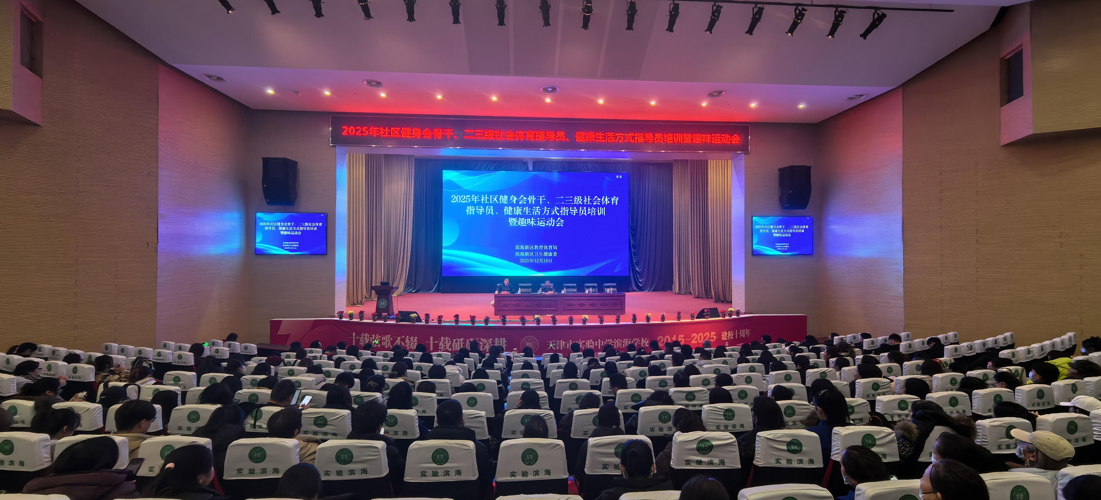 津滨网讯(记者魏薇戴枭翔摄影报道)12月18日,滨海新区教体局联合区卫生健康委举办2025年社区健身会骨干、二三级社会体育指导员及健康生活方式指导员培训暨趣味运动会。区教体局相关工作室、区疾控中心相关工作负责人及各街镇、开发区辖区健身会、社区卫生服务中心相关人员共300余人参加。