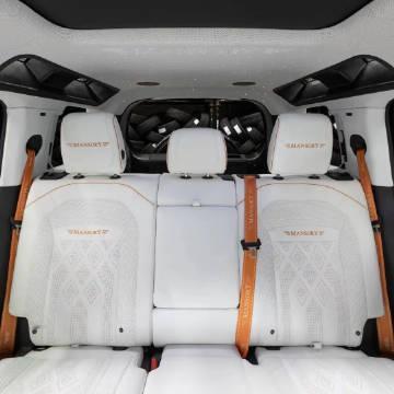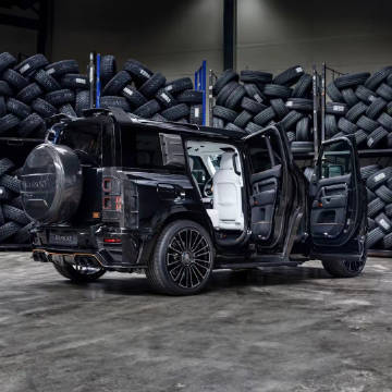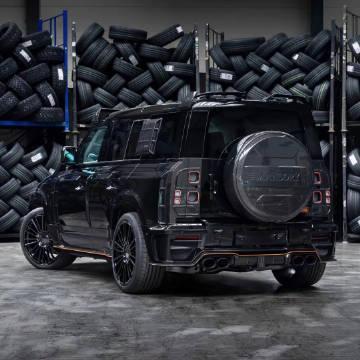 MANSORY迈莎锐 路虎卫士 黑色定制版,全球限量10台,外观空气动力学套件均采用碳纤维打造,车顶配备LED射灯。动力方面,最大马力提升至650马力,峰值扭矩870牛米,0-100公里/小时加速时间仅为4.7秒,最高时速250公里/小时。