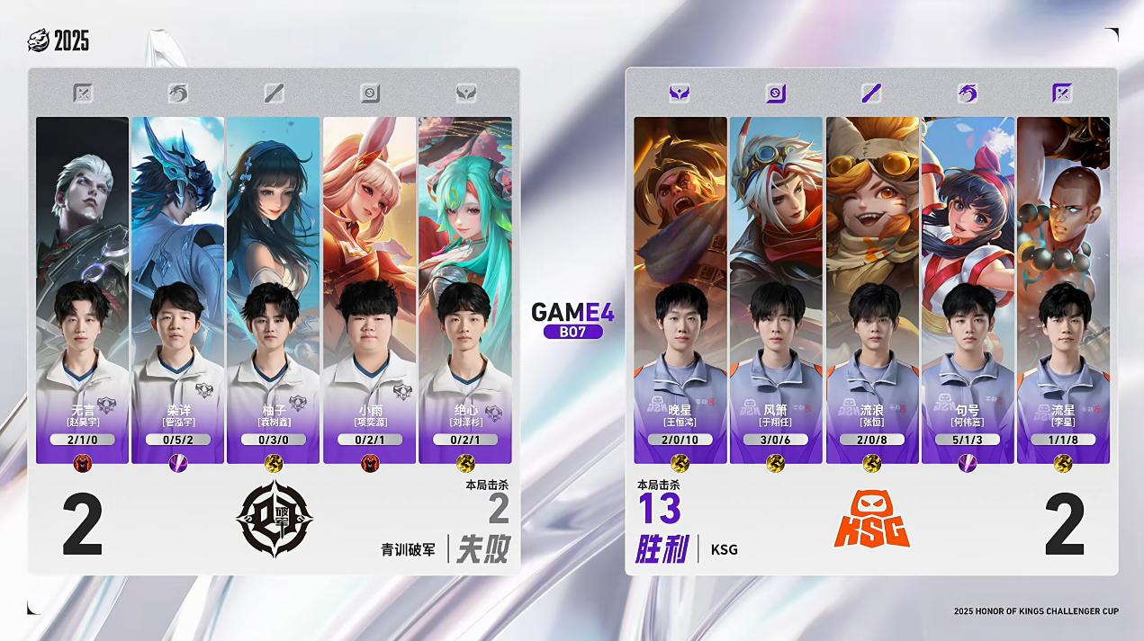 风箫蚩奼想推高地顺手先杀小雨苍,KSG打出零换二后彻底推掉青训破军下路高地