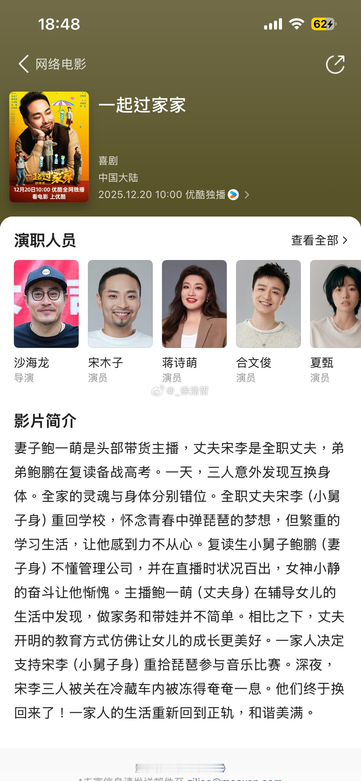 淘票票(大麦娱乐)的电影,沙海龙导演,宋木子、蒋诗萌、合文俊、夏甄、叶泉希领衔主演的电影《一起过家家》(原名 今天我是谁)于明日👖平台独播之前已取得公映许可证,如今院转网有点可惜跨年电影愿