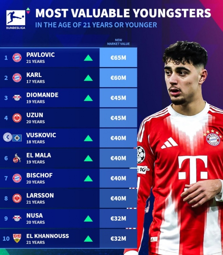 1.帕夫洛维奇(拜仁),21岁,6500万