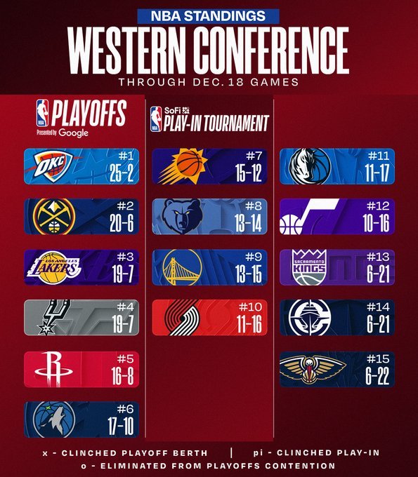 更新:今日赛后东西部排名,湖人稳住第三。NBA