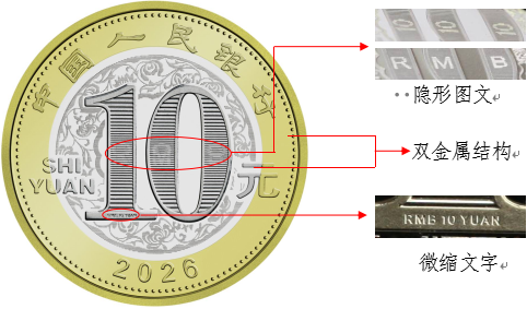 图52026年贺岁双色铜合金纪念币防伪特征示意图