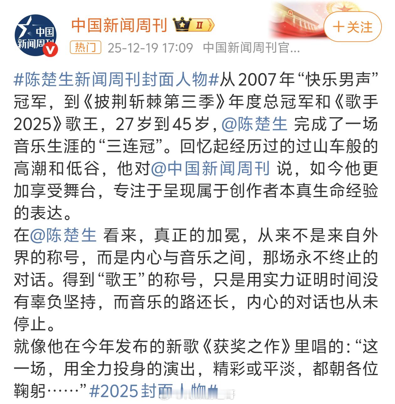 陈楚生新闻周刊封面人物获2025年度影响力歌手恭喜🎊🎊🎊