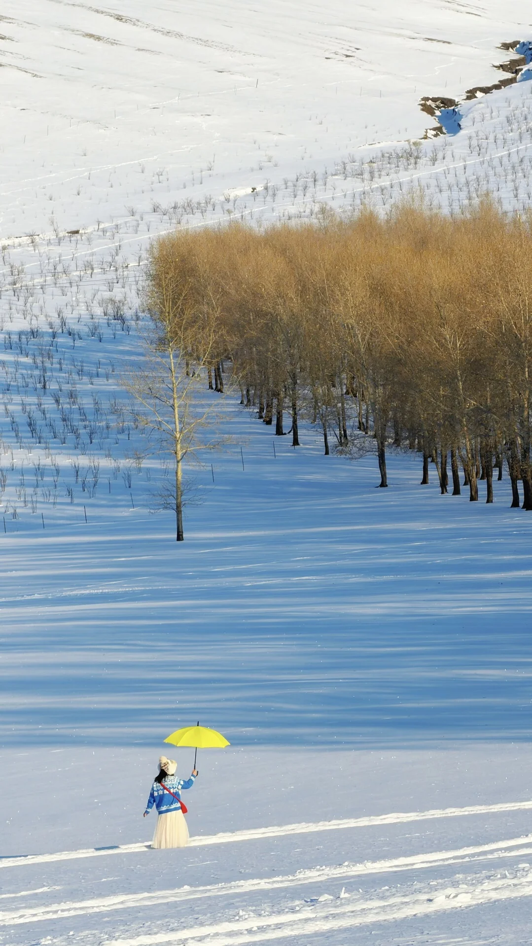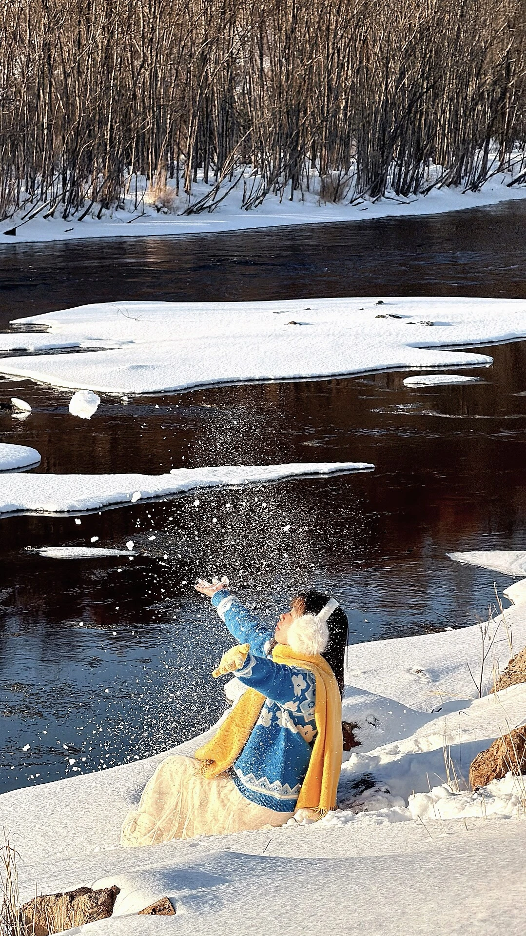 🔻色彩搭配:一定要选亮色系的毛衣、羽绒服,与雪原的纯白形成强烈对比