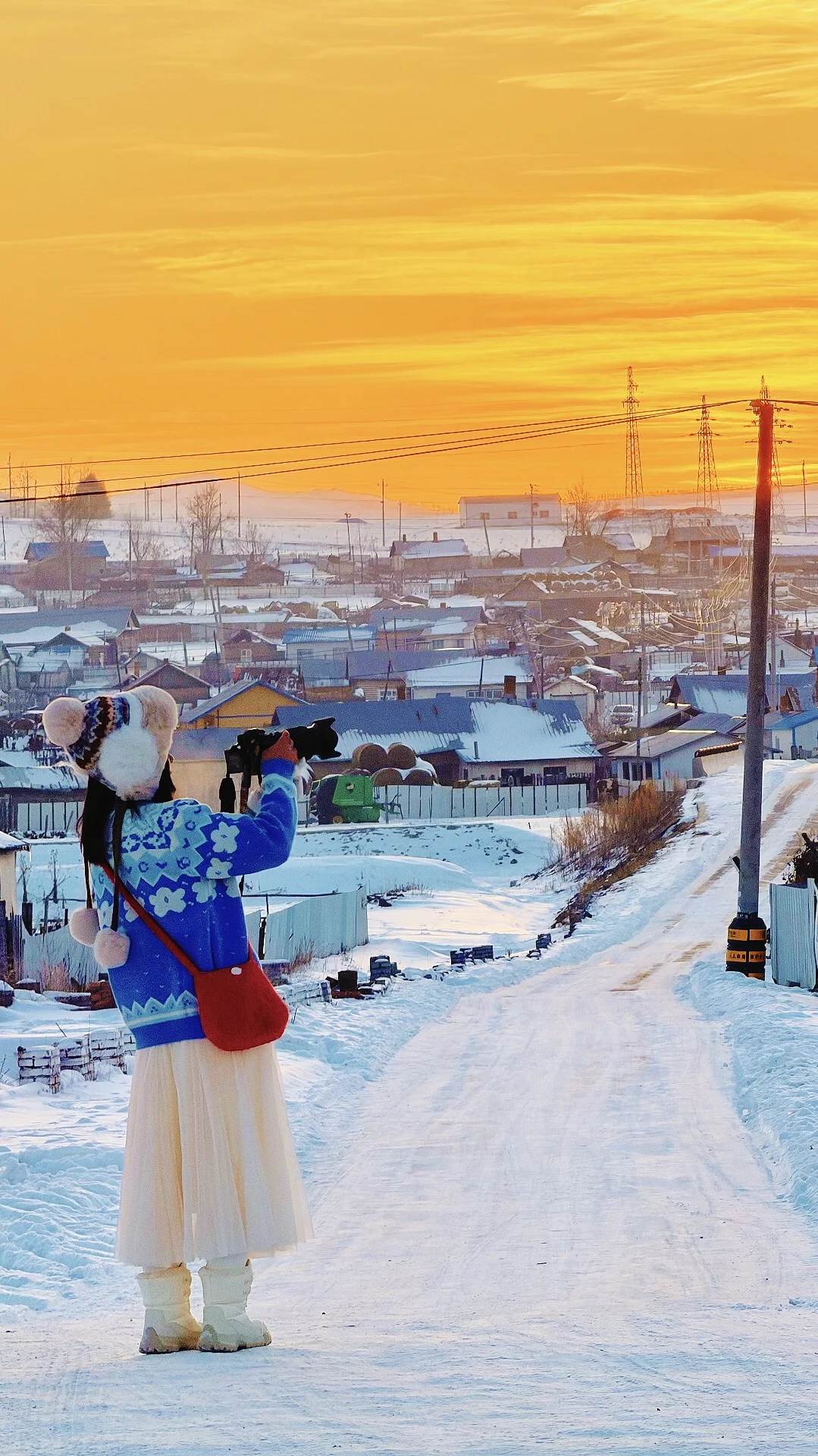 🔻配饰点睛:毛绒围巾、长款防滑雪地靴、毛线帽、手套🧤必不可少,既能保暖又能凹造型😄