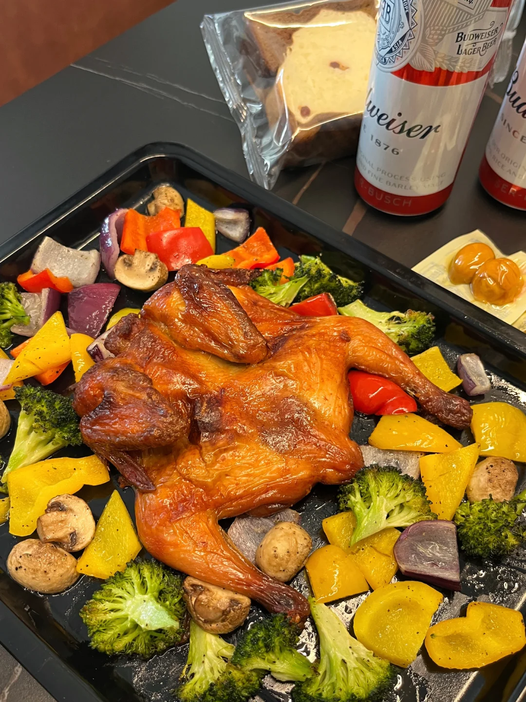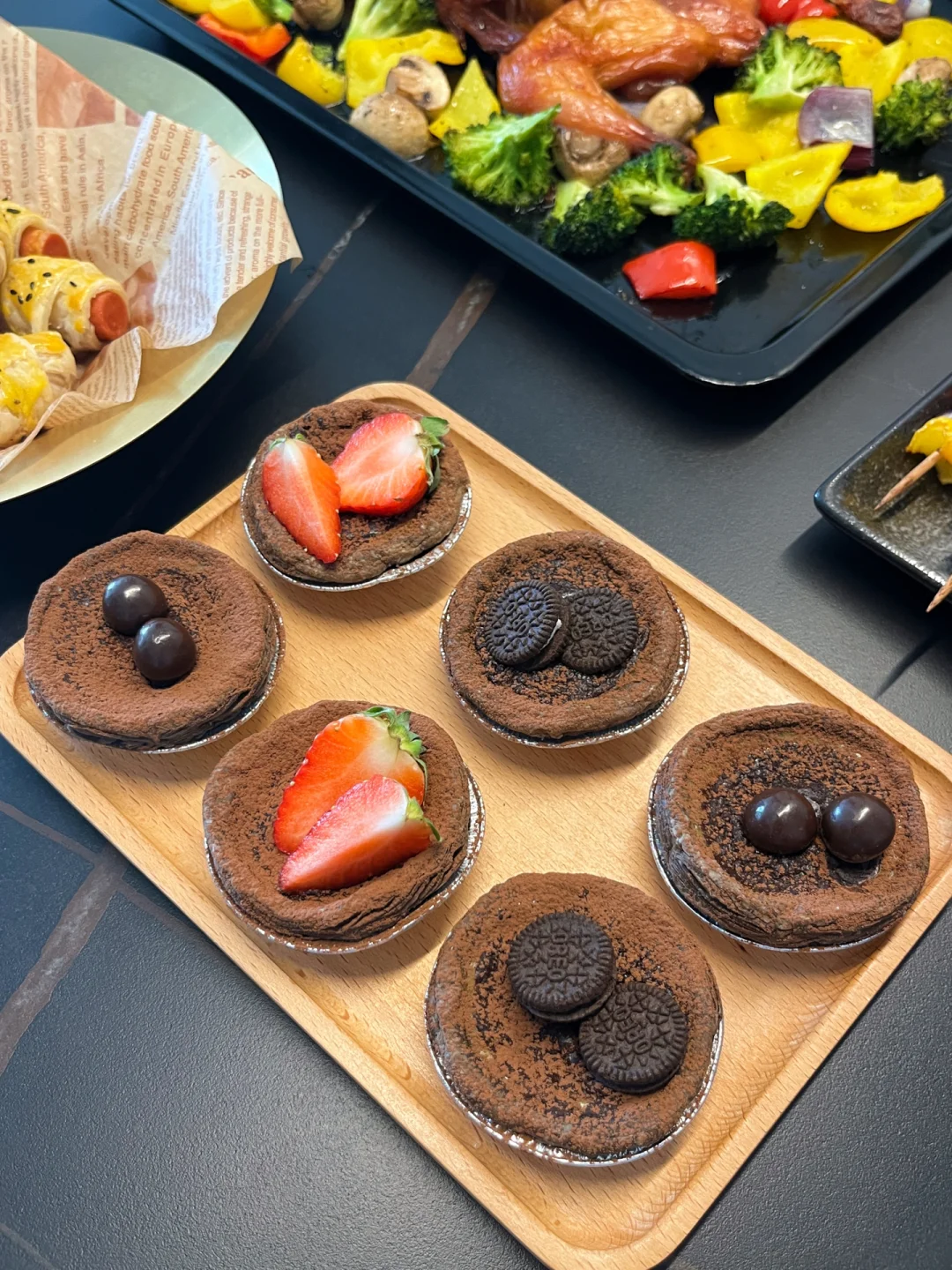 今天晚餐长这样 笔记灵感 原计划跟儿子搞个下午茶,结果越搞越多,直接成了晚饭~做了烤鸡~话说这个月的圣诞大餐烤鸡要申请出战了! 还有最近流行的可可巧克力蛋挞也安排上了,一口爆浆,巧克力控快做起来~ 迷你可颂之前也是发过教程哒~喜欢的小伙伴可以翻一下之前的作品!
