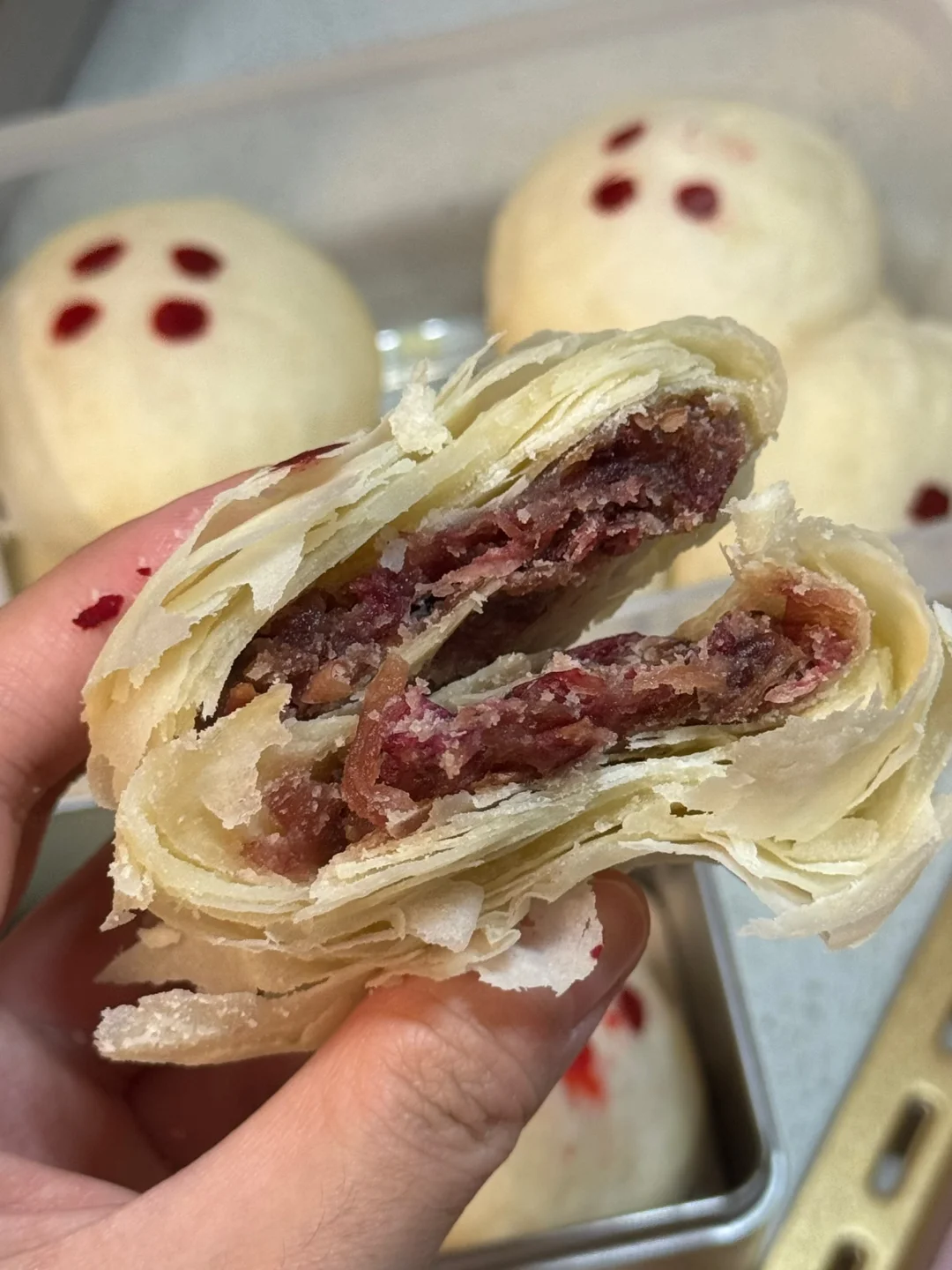 🌷最好开着空调来制作,防止油化了破酥,包油酥的时候收口处一定要捏紧,自己做的层层起酥,而且是低糖的真的太好吃了!!!