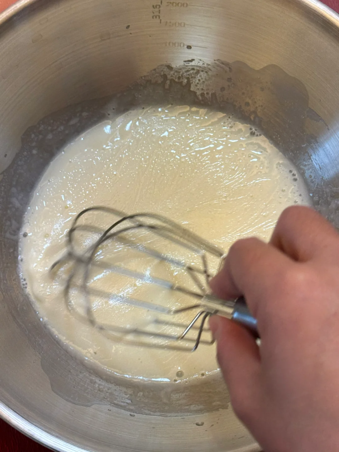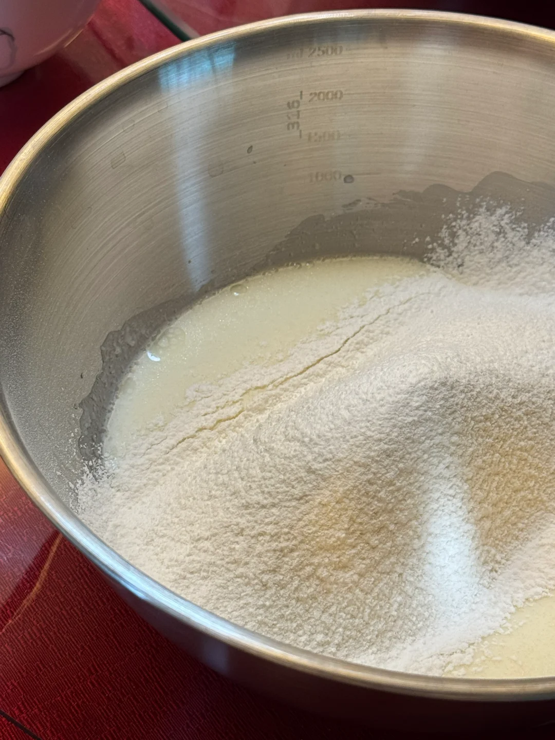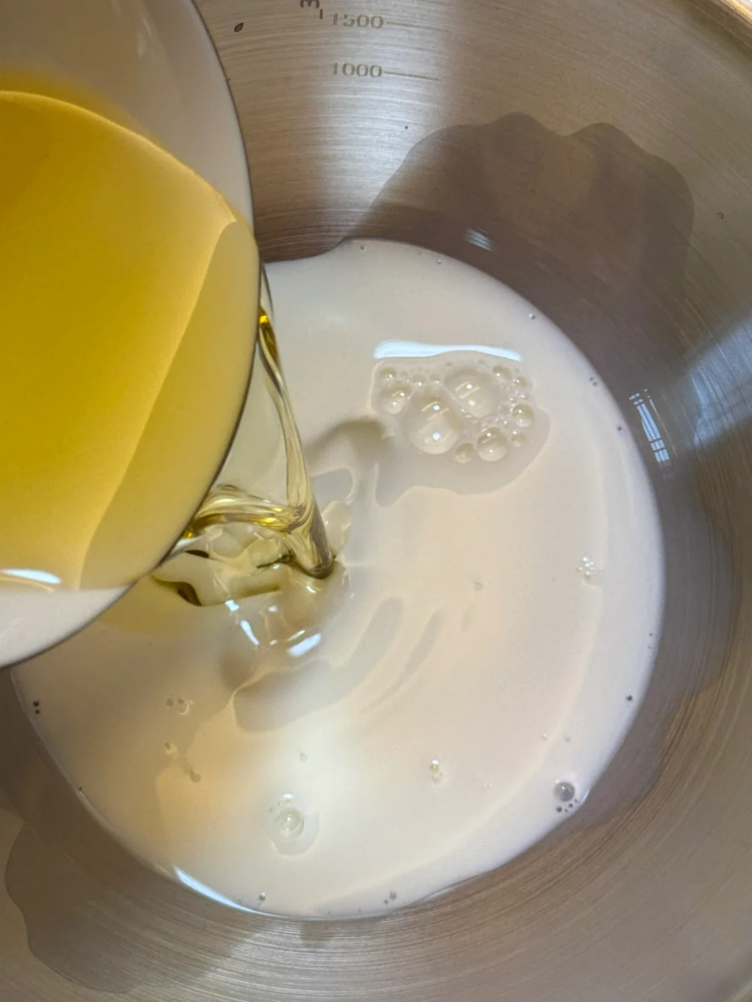 1.蛋清蛋黄分离,大碗中加入纯牛奶、玉米油搅拌至乳化。