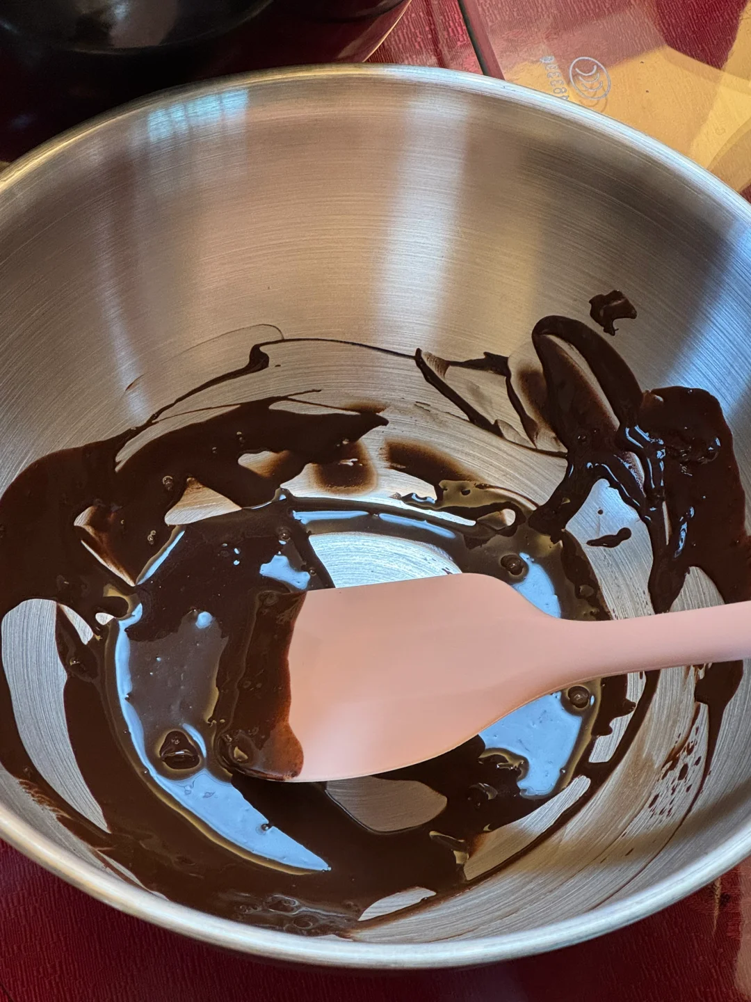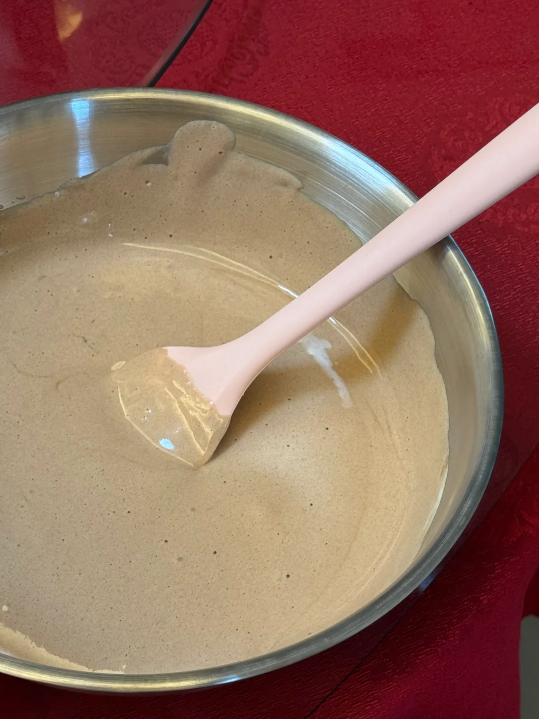 3.可可粉少量多次加入热水搅拌至浓稠的状态备用。