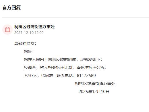 问:想请问一下钱清街道珠墅村最近几年还会拆迁吗,还是说以后都不拆了。