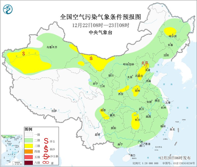 20日,受上游污染物传输影响,区域大部地区有轻至中度霾天气,局地短时有重度霾。21日至22日,苏皖北部大气扩散条件一般,部分地区有轻度霾。23日至25日,受冷空气影响,区域大部大气扩散条件较好。