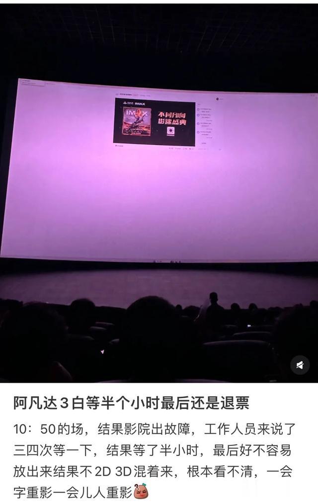 记者注意到,2022年《阿凡达2》上映首日,多地影院就出现过放映故障,故障类型包括画面黑屏、重影、声音画面不同步、画面抖动或完全无3D效果等,部分场次因技术问题被迫中断或提前退票。