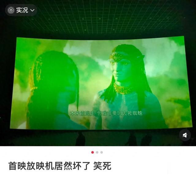 《阿凡达3》昨天正式上映,多地网友在社交平台上配图发文称看《阿凡达3》时遭遇“放映机坏了”。记者看到,实况图上,有的大银幕背景成绿色的了,有的直接放不出,有的是模糊卡顿的。