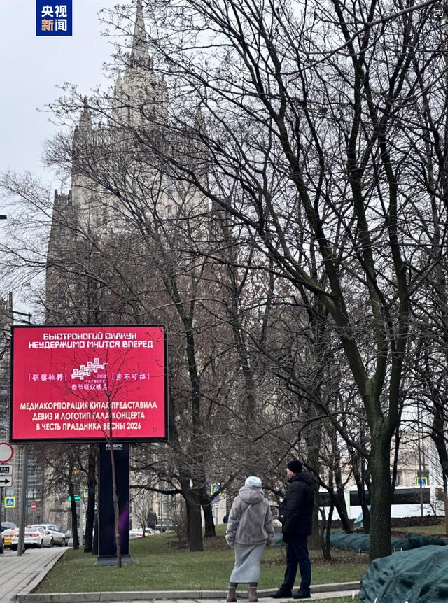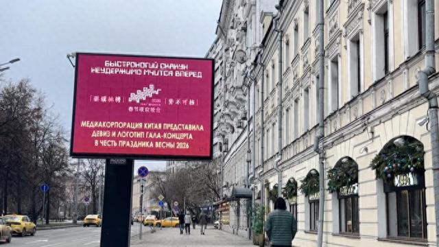 当地时间12月19日,中央广播电视总台《2026年春节联欢晚会》主题与主标识在俄罗斯莫斯科市中心CBD、新阿尔巴特街及基辅火车站等核心区域首次亮相。此次展示集中呈现了春晚主标识的整体创意理念与视觉风格,其融合中国传统纹饰的“骐骥驰骋”设计,吸引不少当地民众驻足观看。