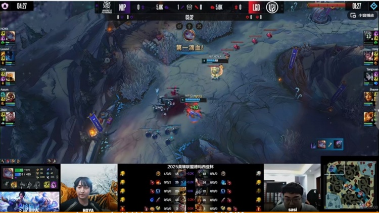 [20:45]LGD双人埋伏草丛,一波5打3强行留住了HOYA波比!LGD拿下厄塔汗!NIP则是用先锋撞掉了LGD的中路双外塔!这波打完2K经济差!
