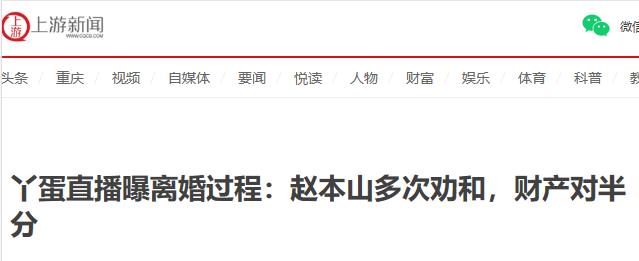 上游新闻-2017年11月10日-《丫蛋直播曝离婚过程:赵本山多次劝和,财产对半分》