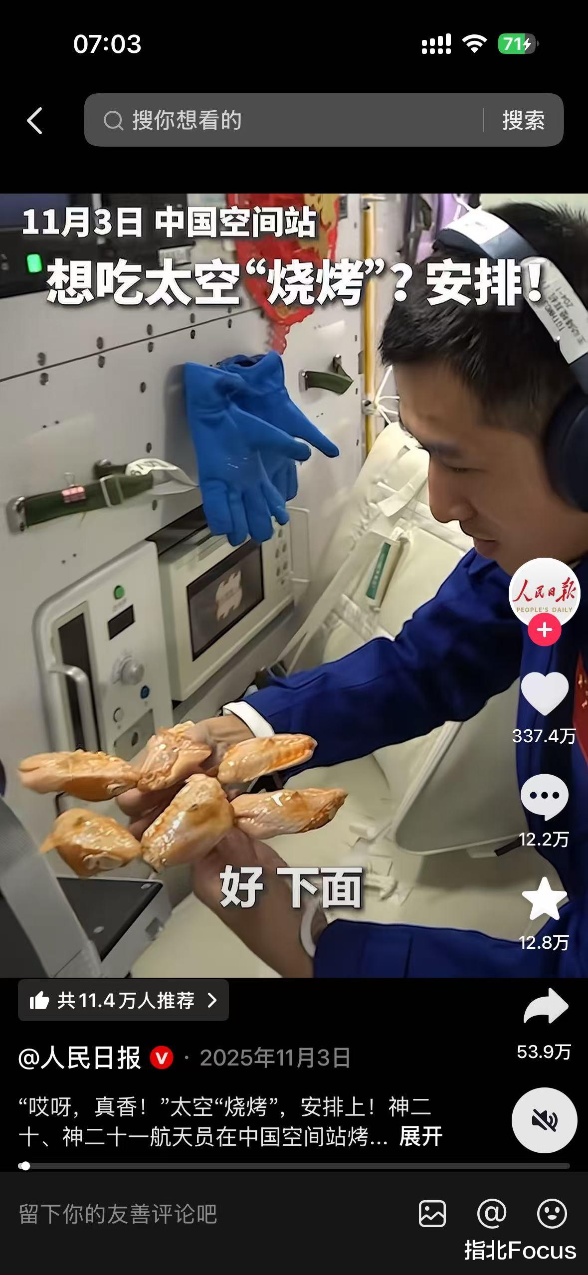 但如果能展示出技术最终服务于人,能游刃有余地满足人的“平平无奇”的需求,让人在真空、失重、极端温度的环境里,吃上一口热的、有烟火气的食物,这件事本身,就比很多冰冷的数据更有意义。