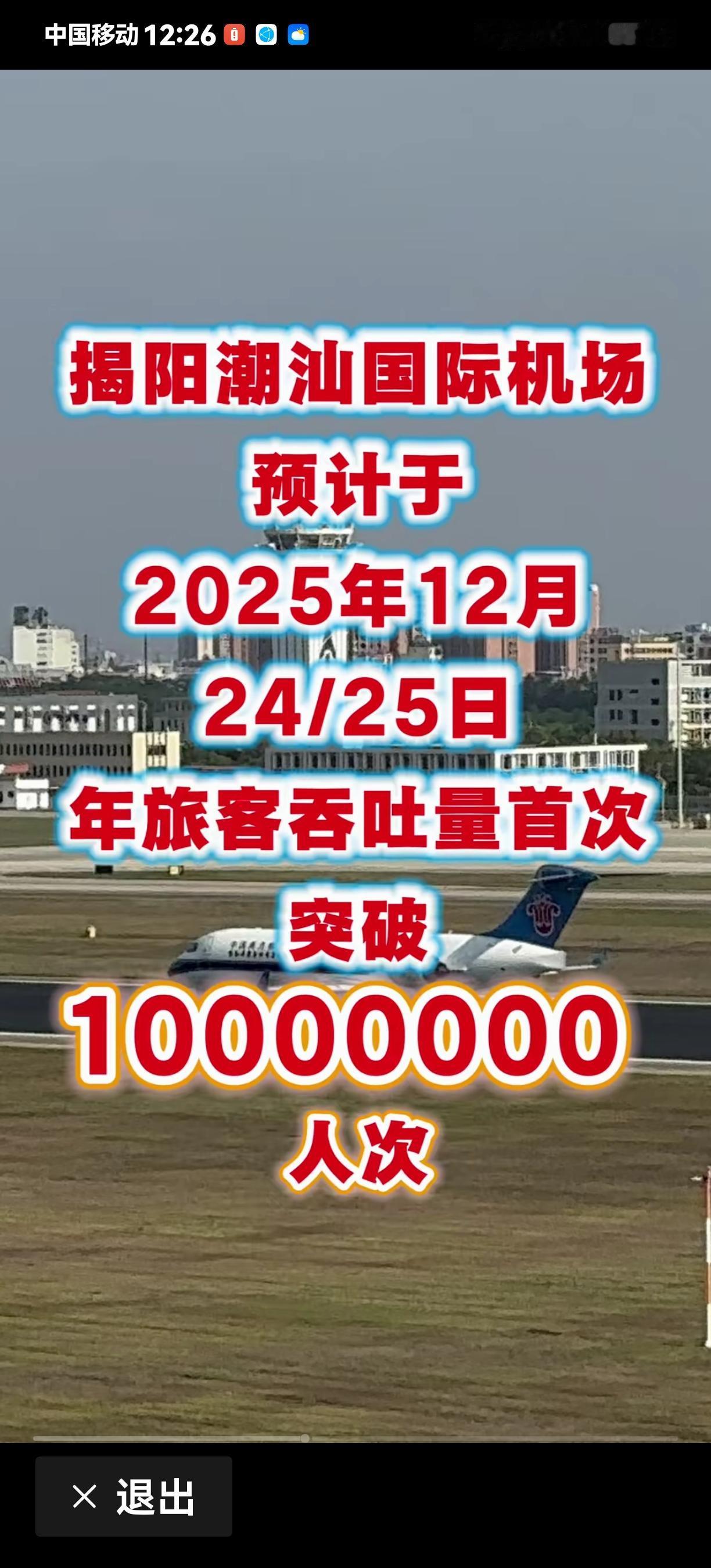 2025年广东省《揭阳机场》旅客吞吐量突破1000万人次。