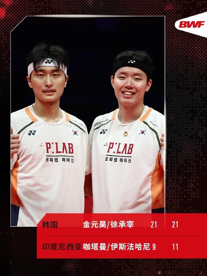世界羽联年终总决赛男双半决赛:金元昊/徐承宰组合晋级决赛