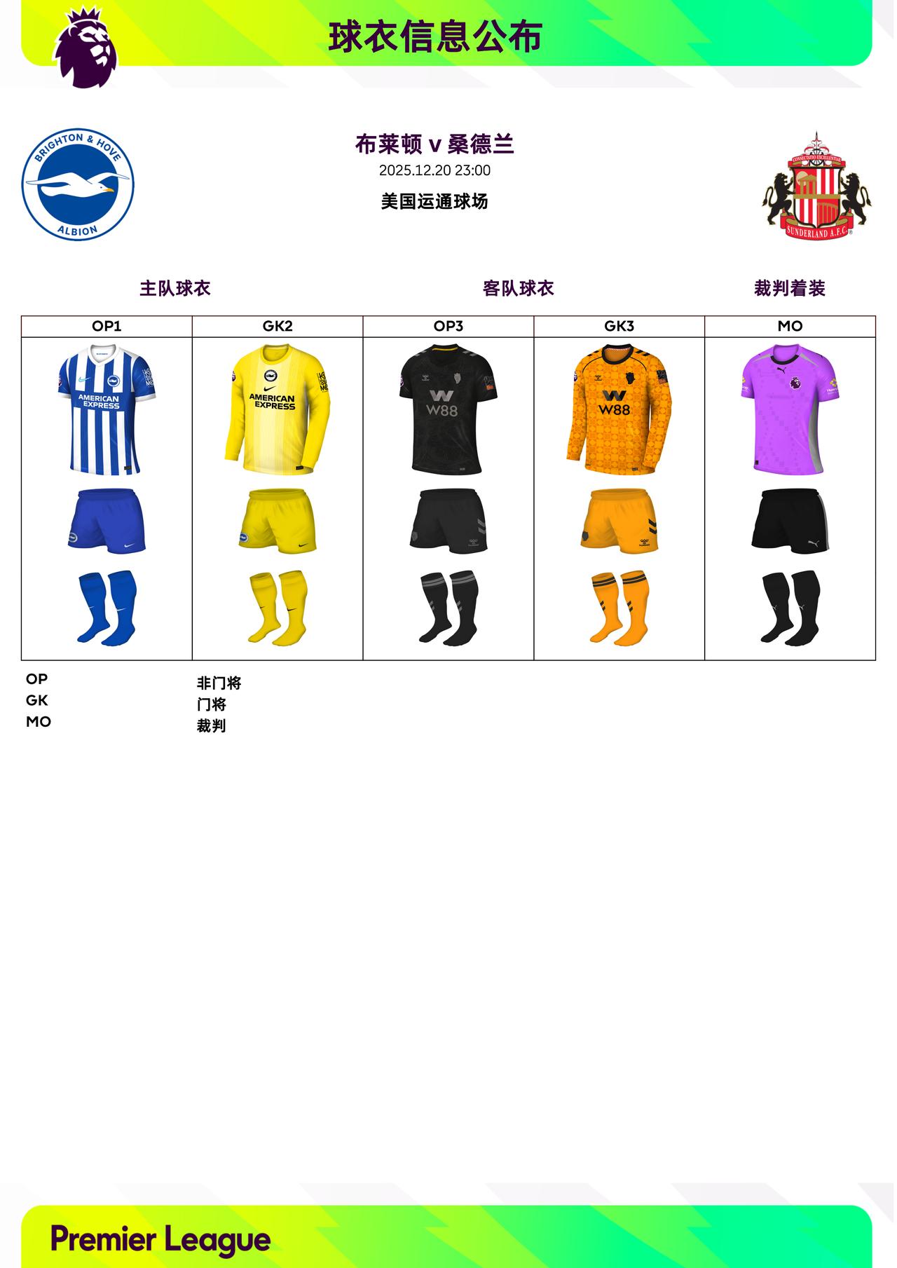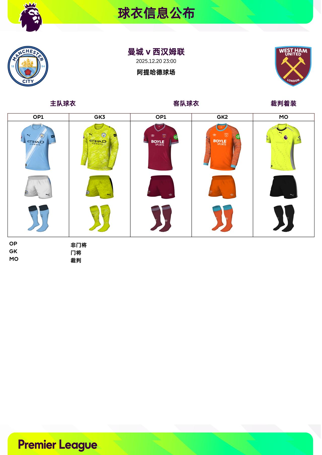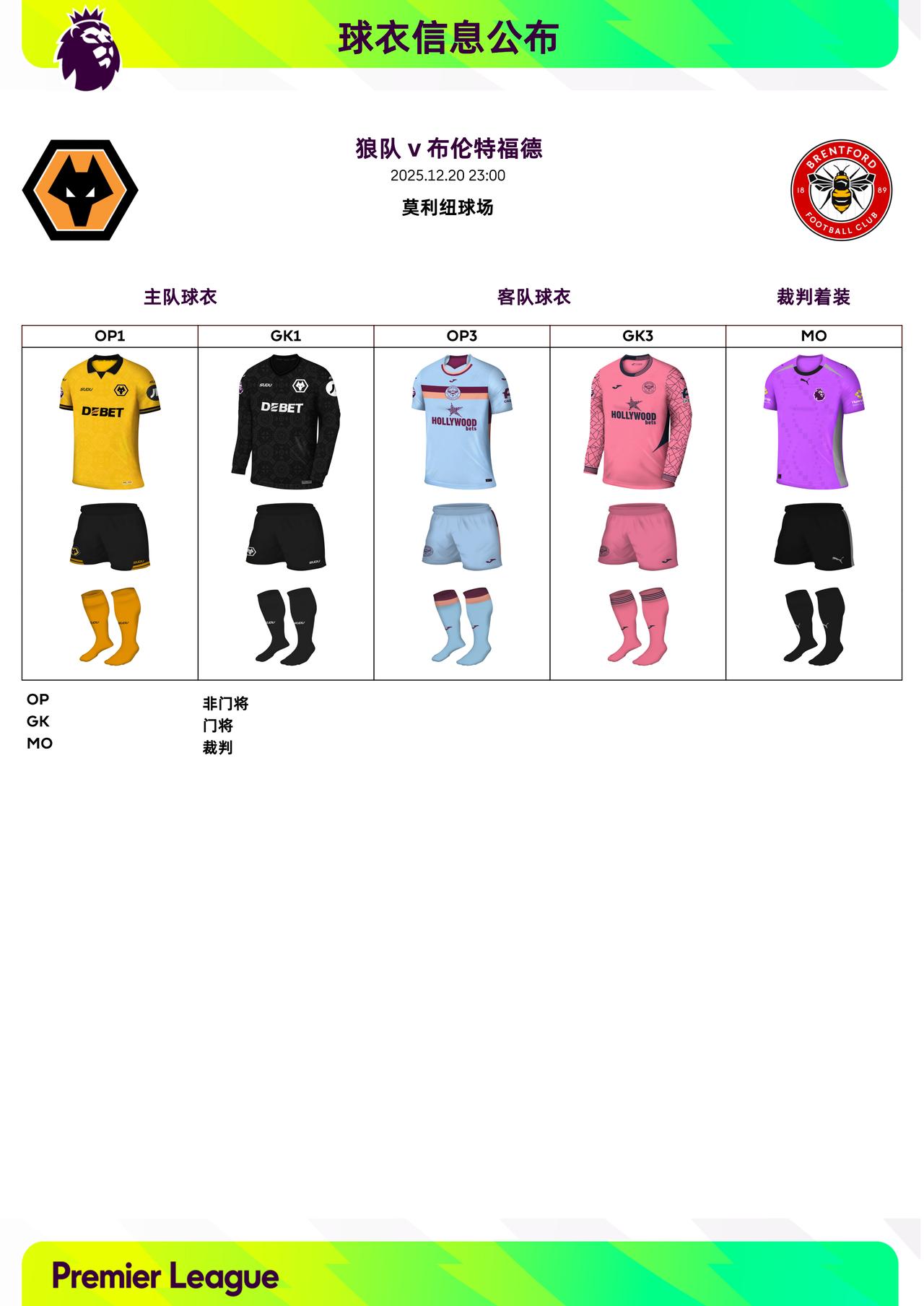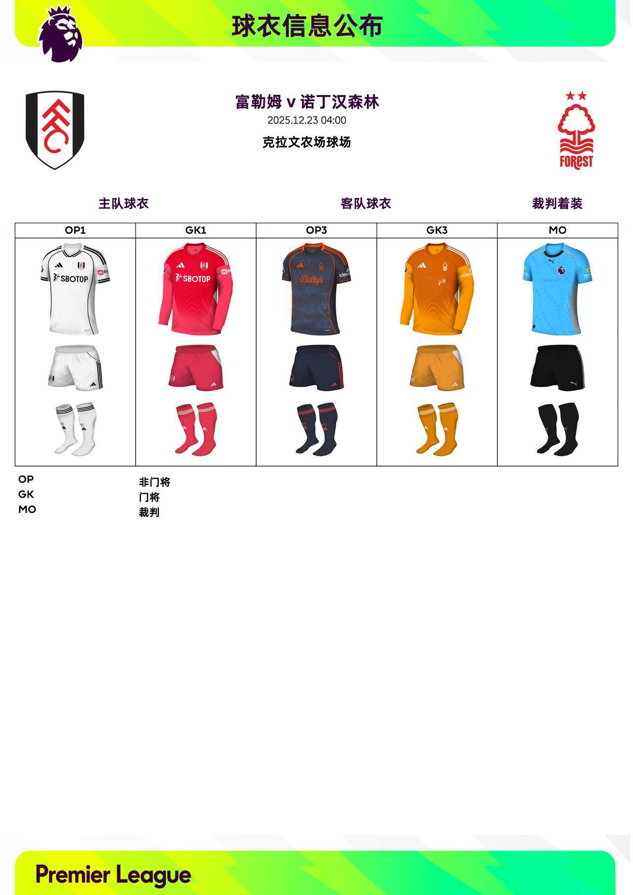 2025/26赛季英超联赛第17轮球衣信息: ◉ 焦点战——热刺 v 利物浦,“红军”身穿主场球衣