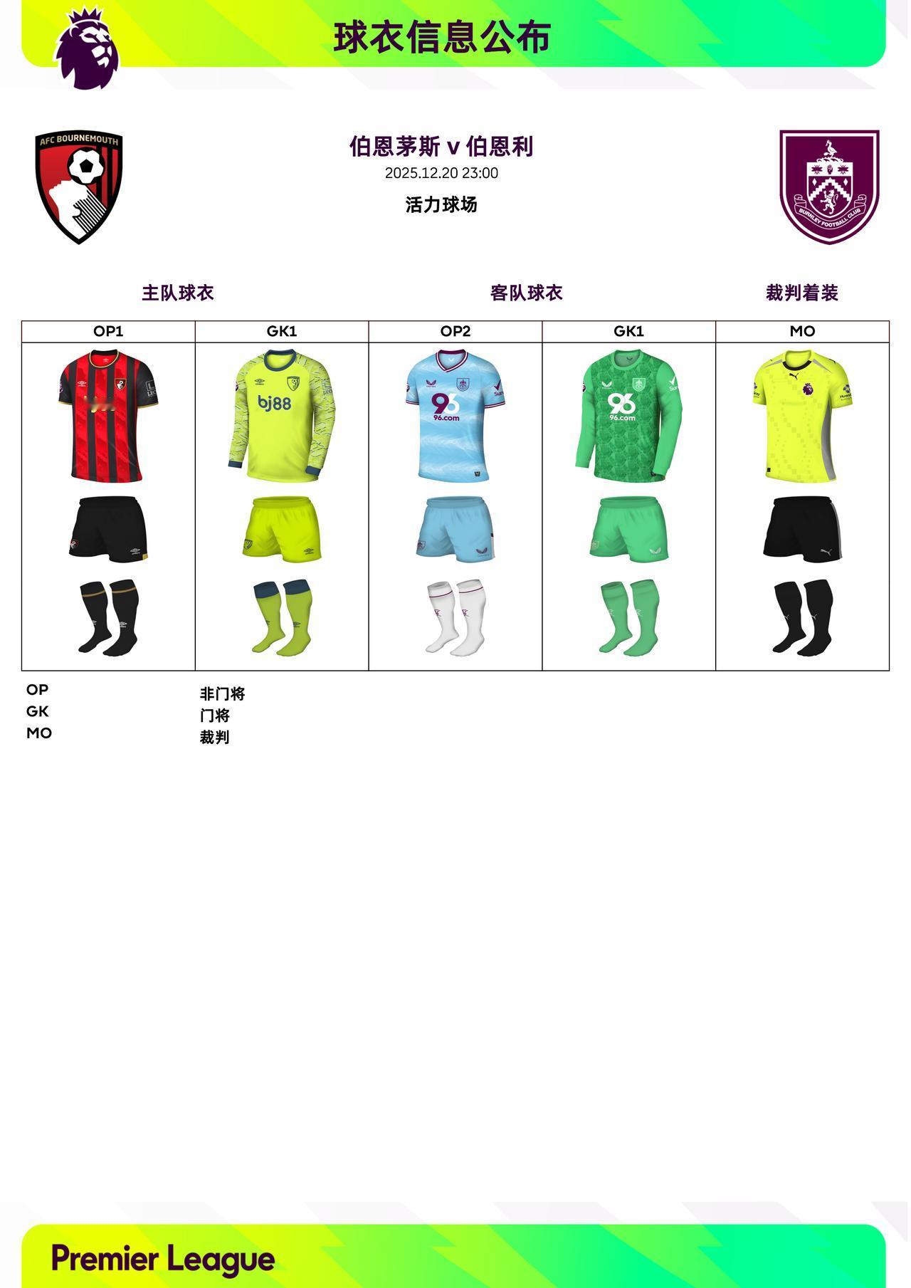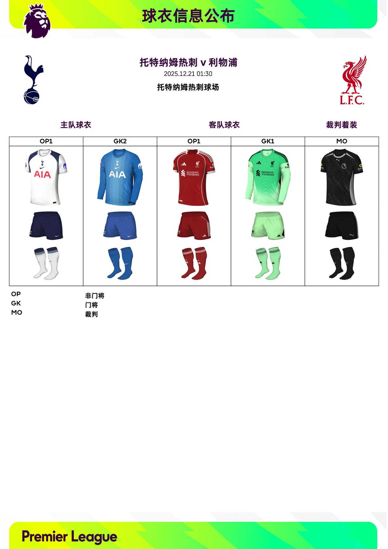 2025/26赛季英超联赛第17轮球衣信息: ◉ 焦点战——热刺 v 利物浦,