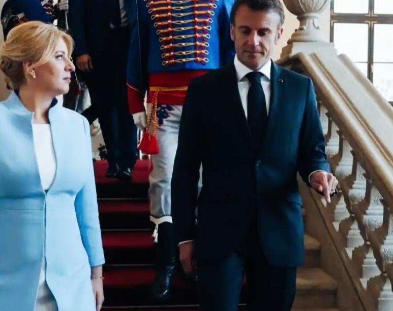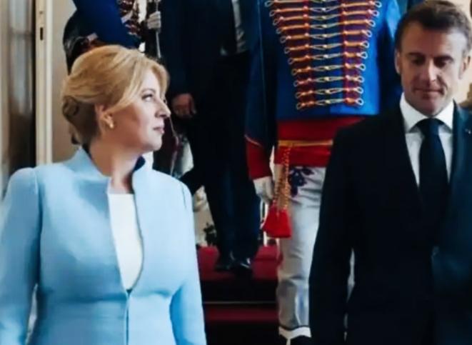 斯洛伐克前总统苏珊娜看马克龙的眼神挺特别啊! 这是在听马克龙讲什么呢? 这眼神中